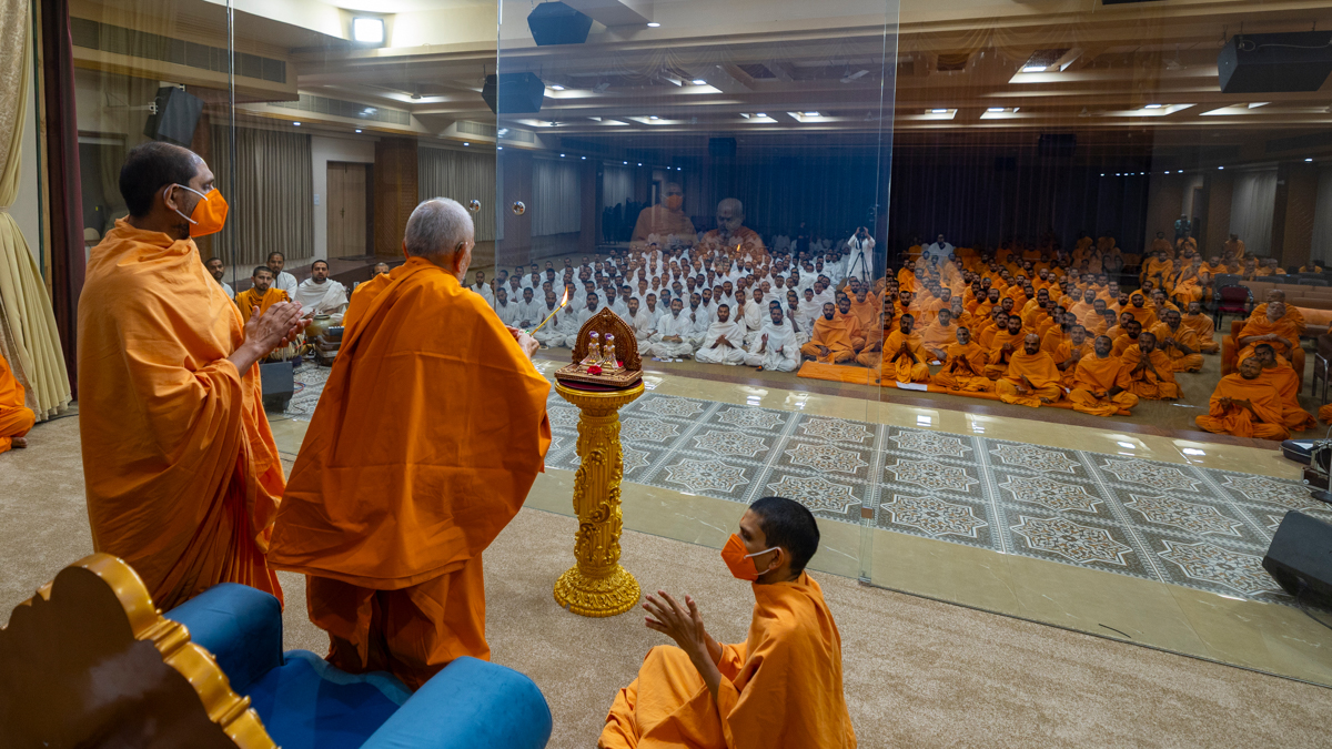 Swamishri performs the arti