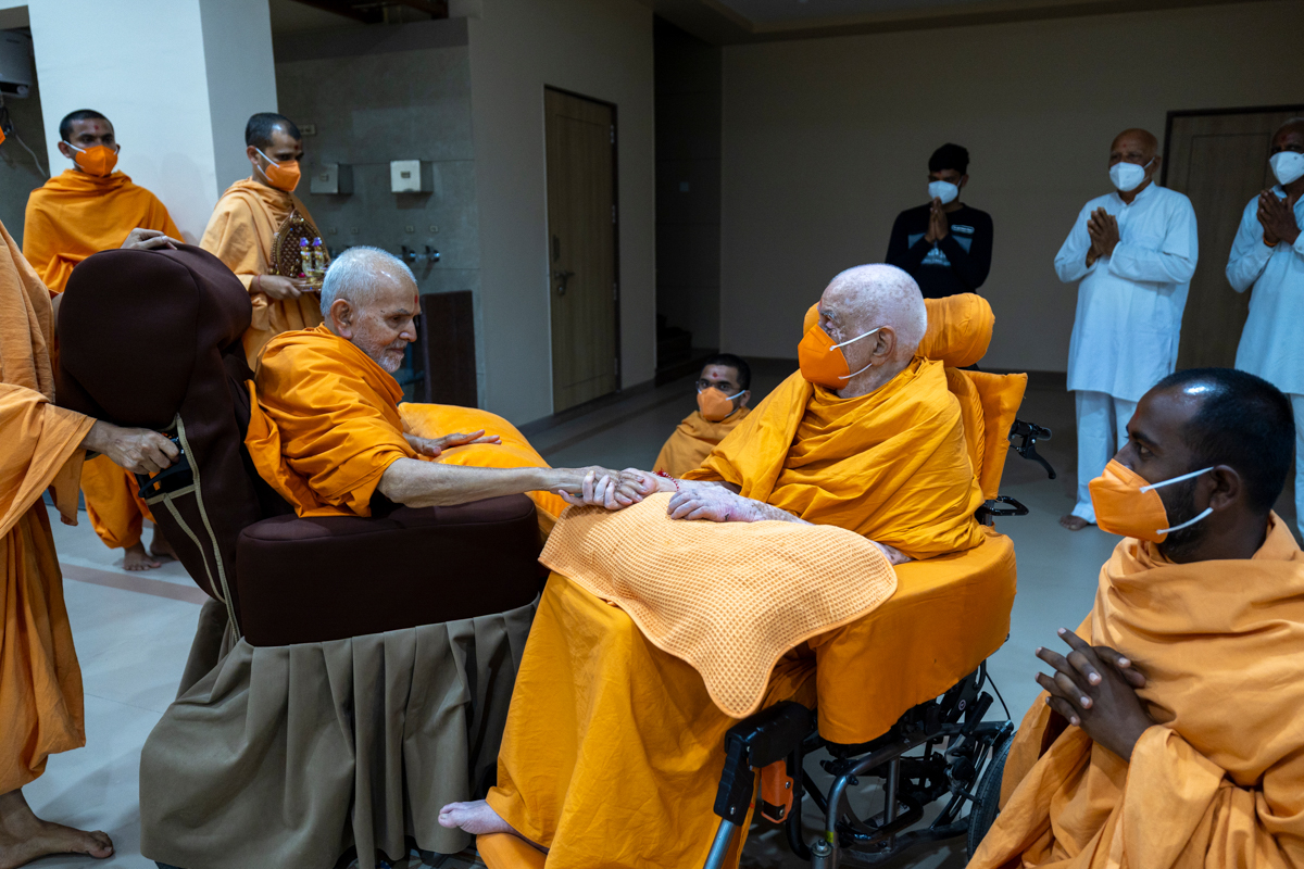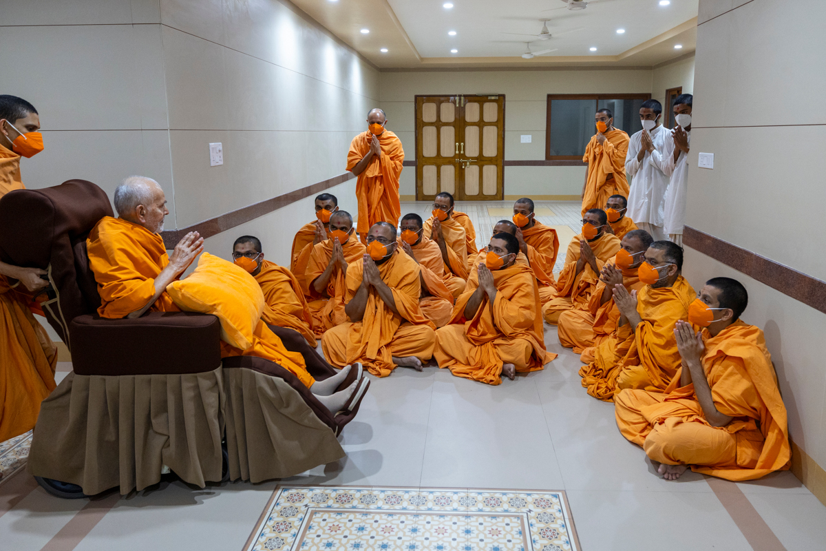 Swamishri greets all with folded hands