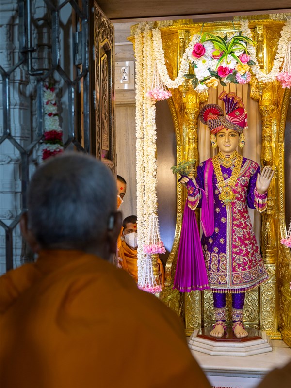 Swamishri engrossed in darshan of Shri Ghanshyam Maharaj
