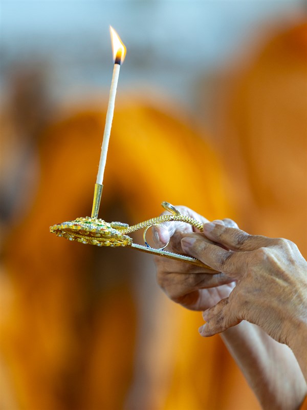 Swamishri performs the sandhya arti