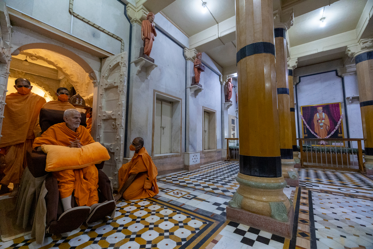 Swamis doing darshan of Swamishri