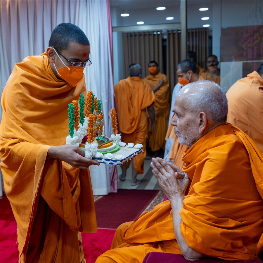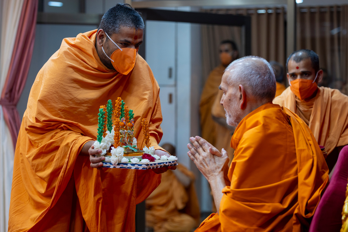 Pujya Tyagvallabh Swami presents before Swamishri