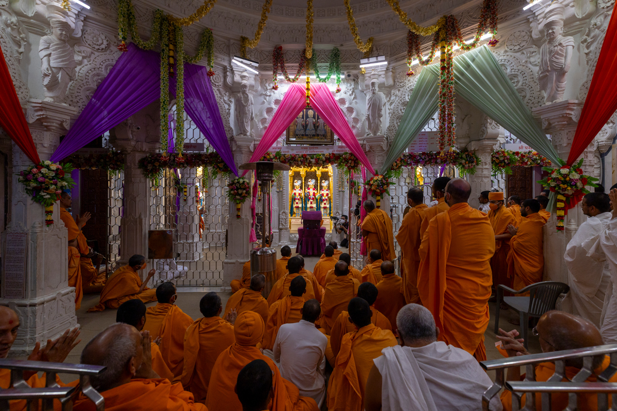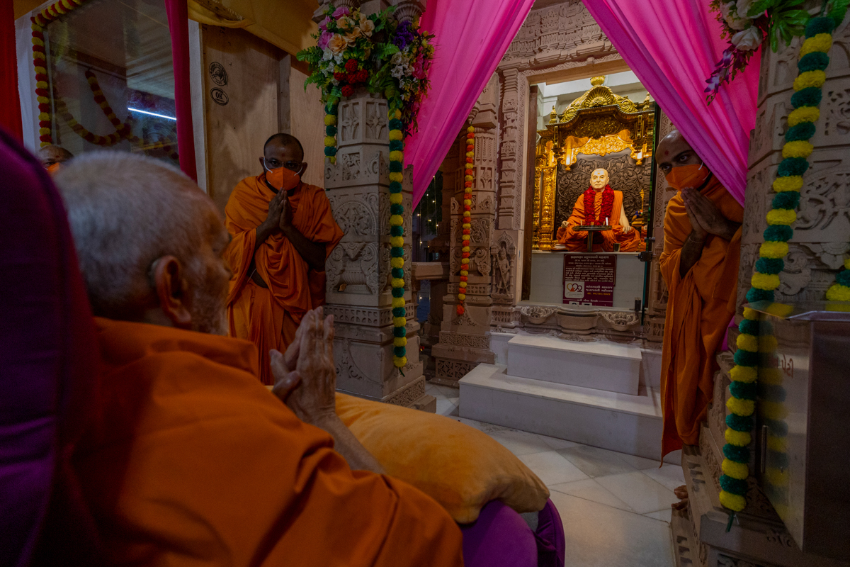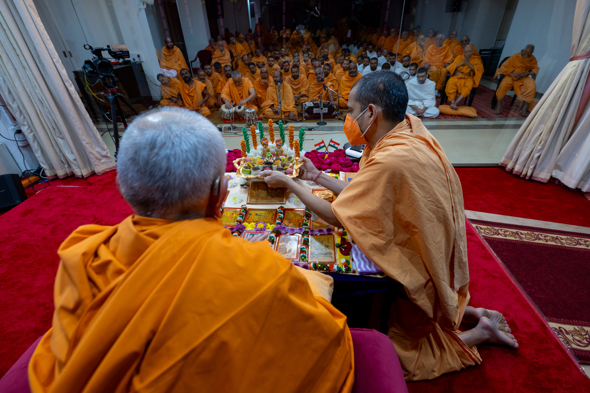 Swamis doing Swamishri's puja darshan