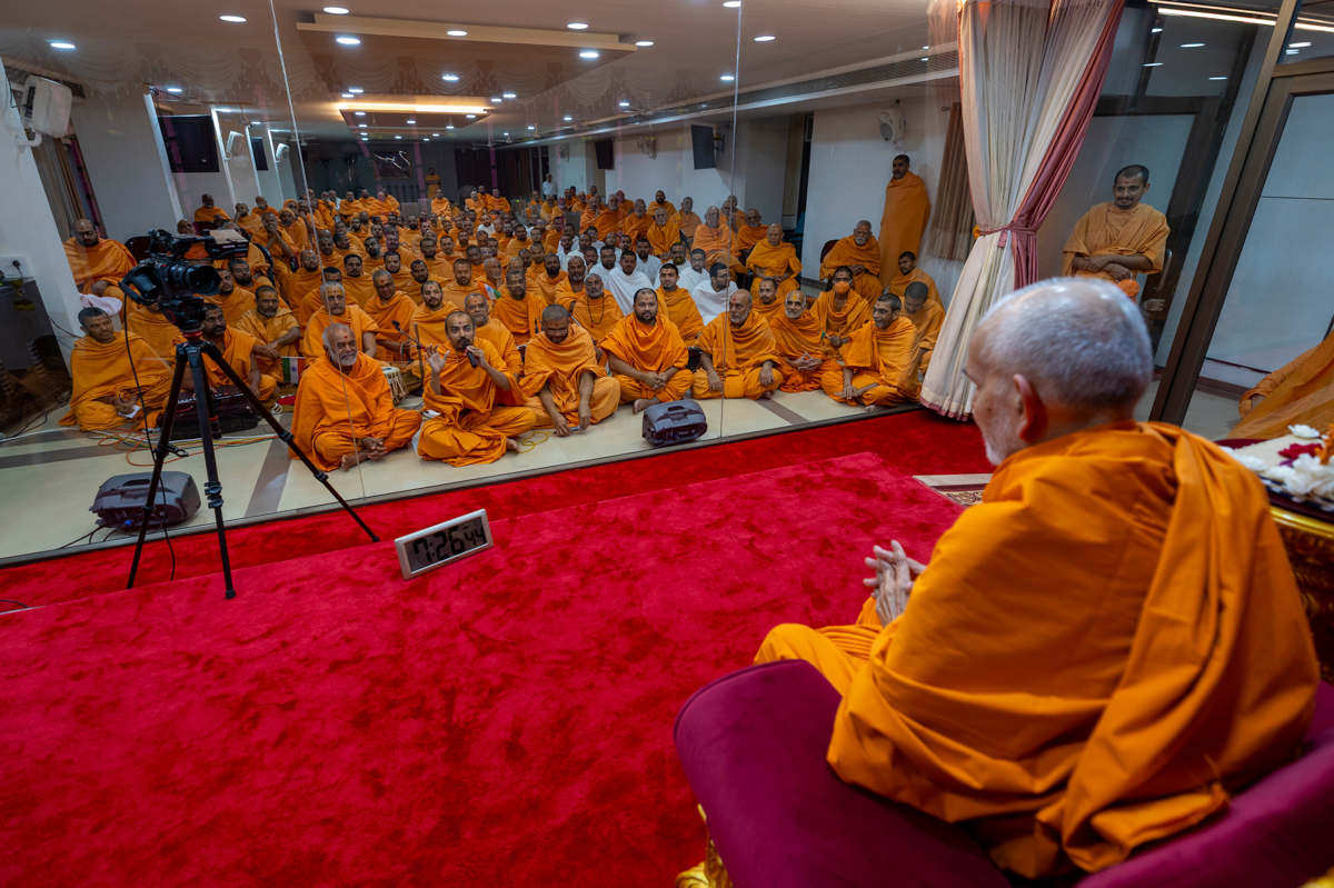 Swamishri blesses the morning assembly