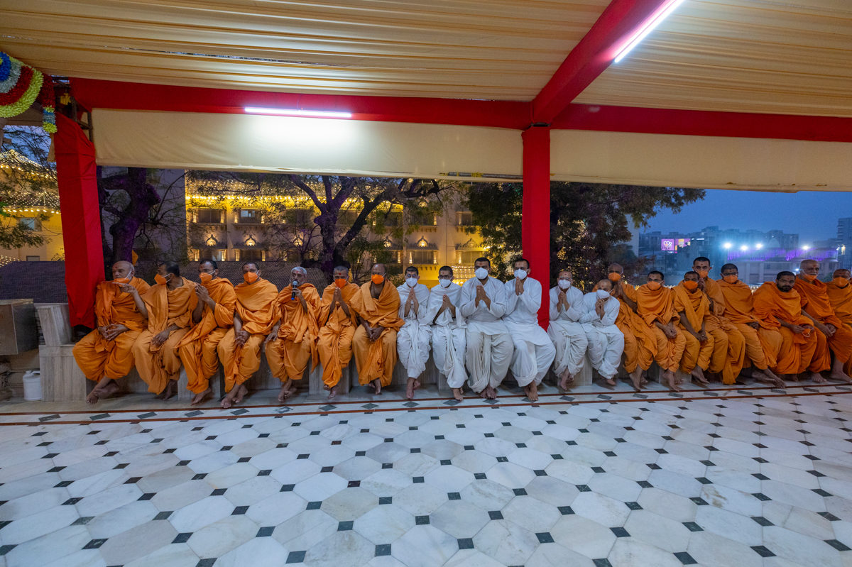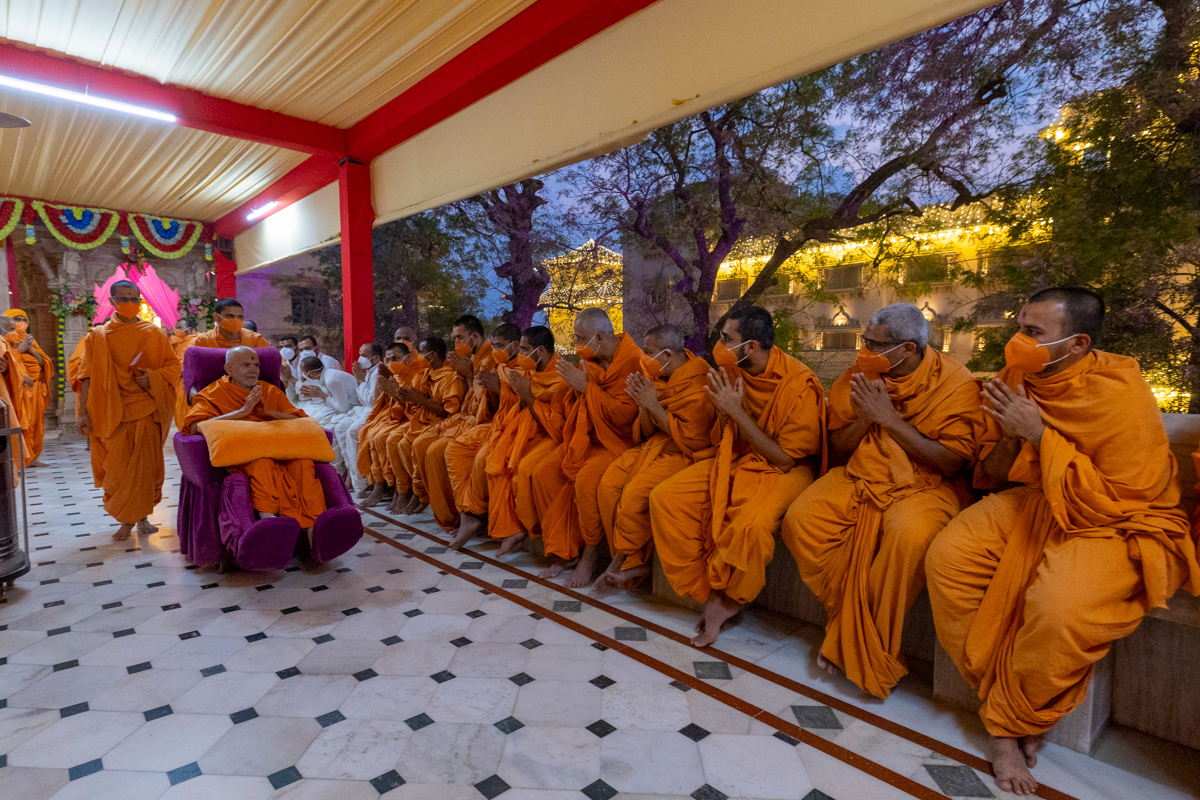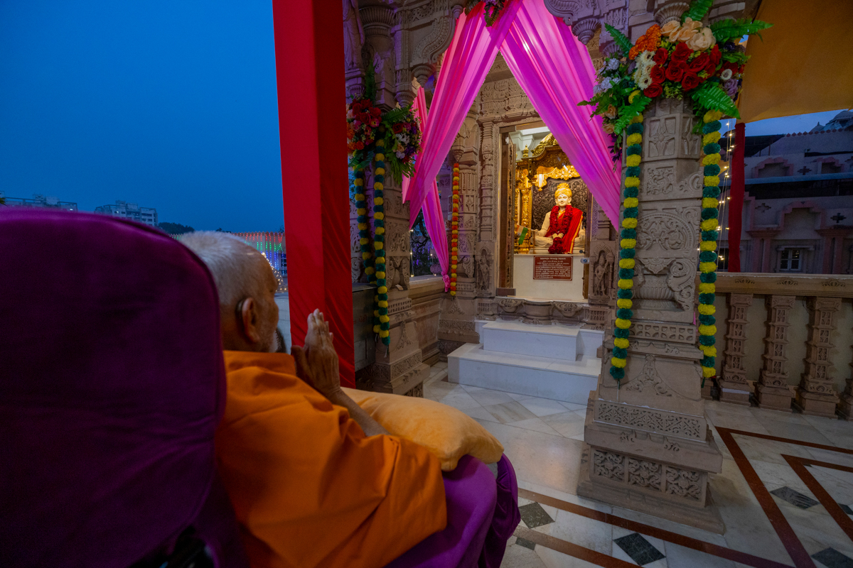 Swamishri performs the evening arti