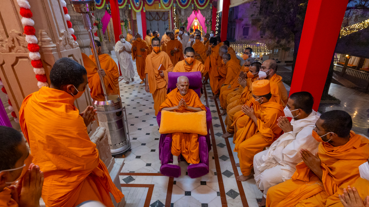 Swamishri on his way to Thakorji's darshan