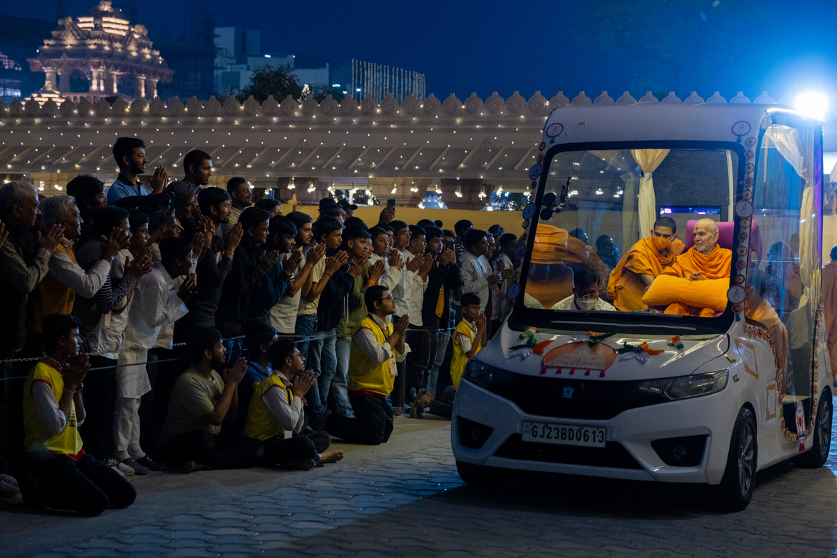 Swamishri greets all with folded hands