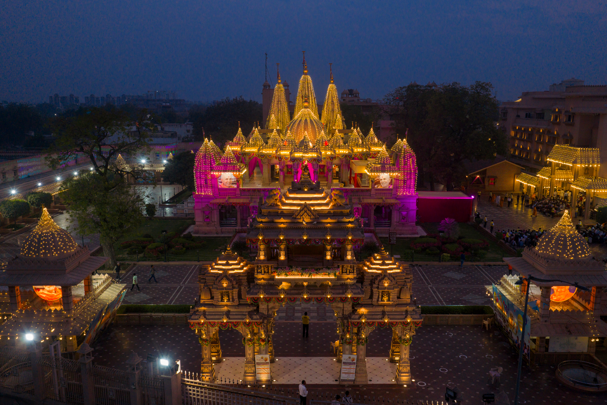 Aerial view of BAPS Shri Swaminarayan Mandir, Atladara (Vadodara)