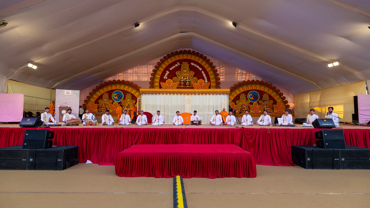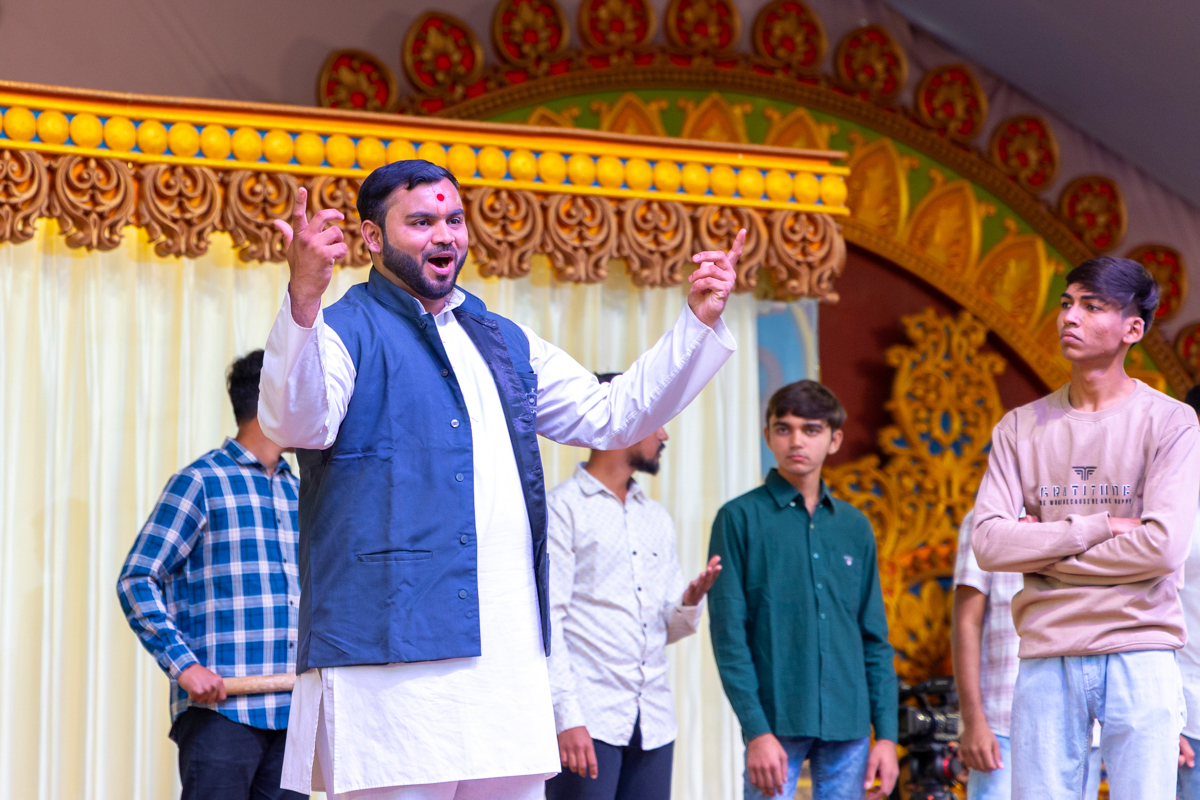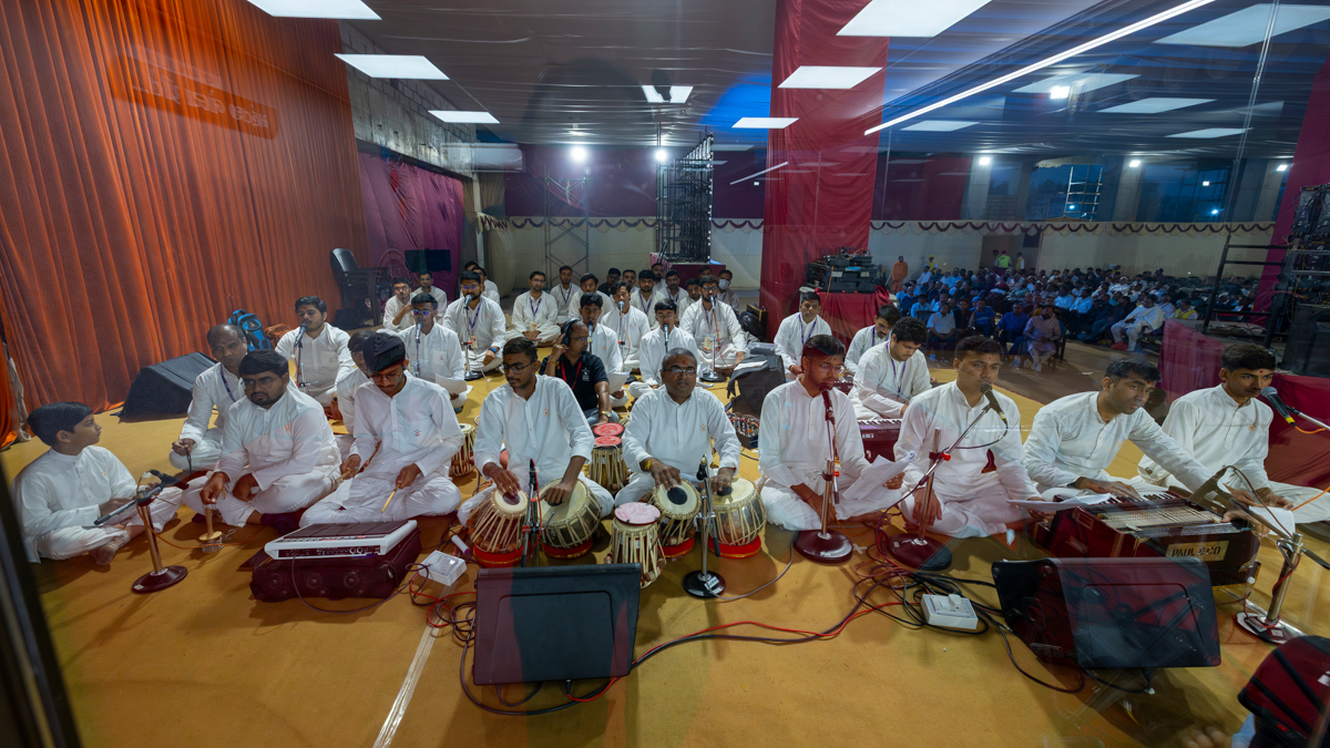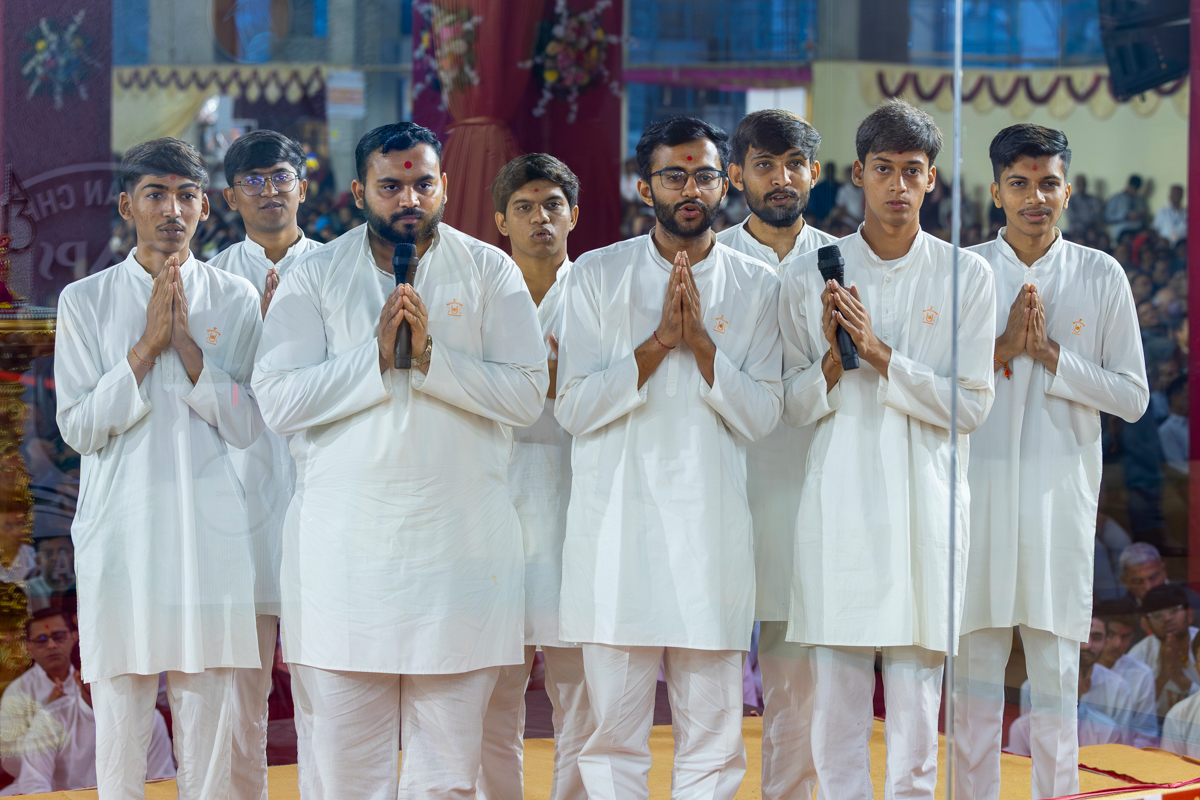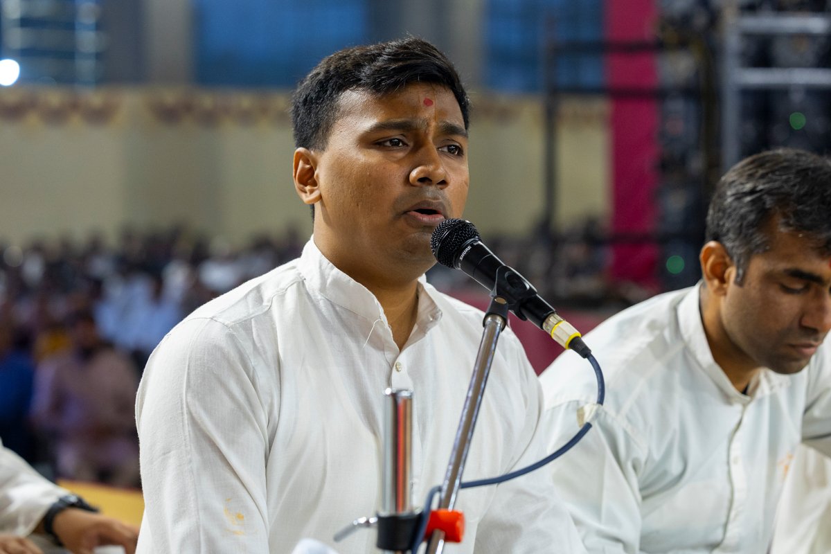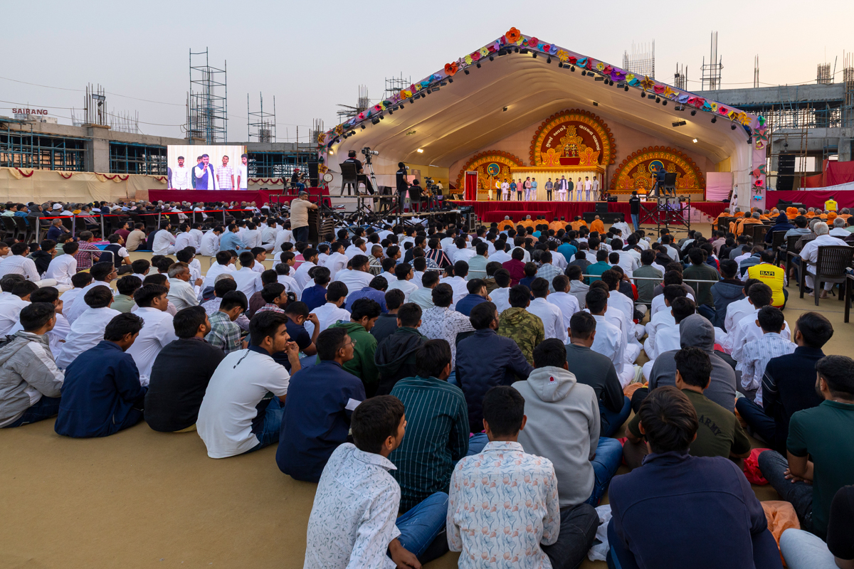Yuvaks sing kirtans in the assembly
