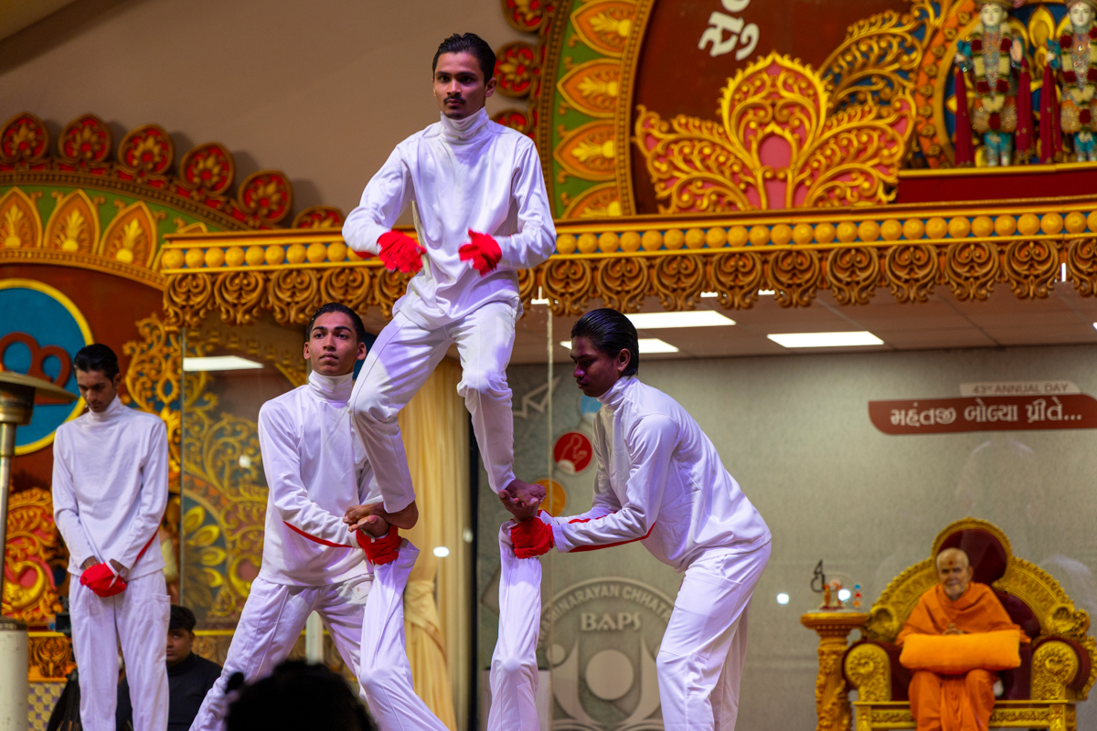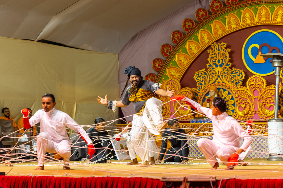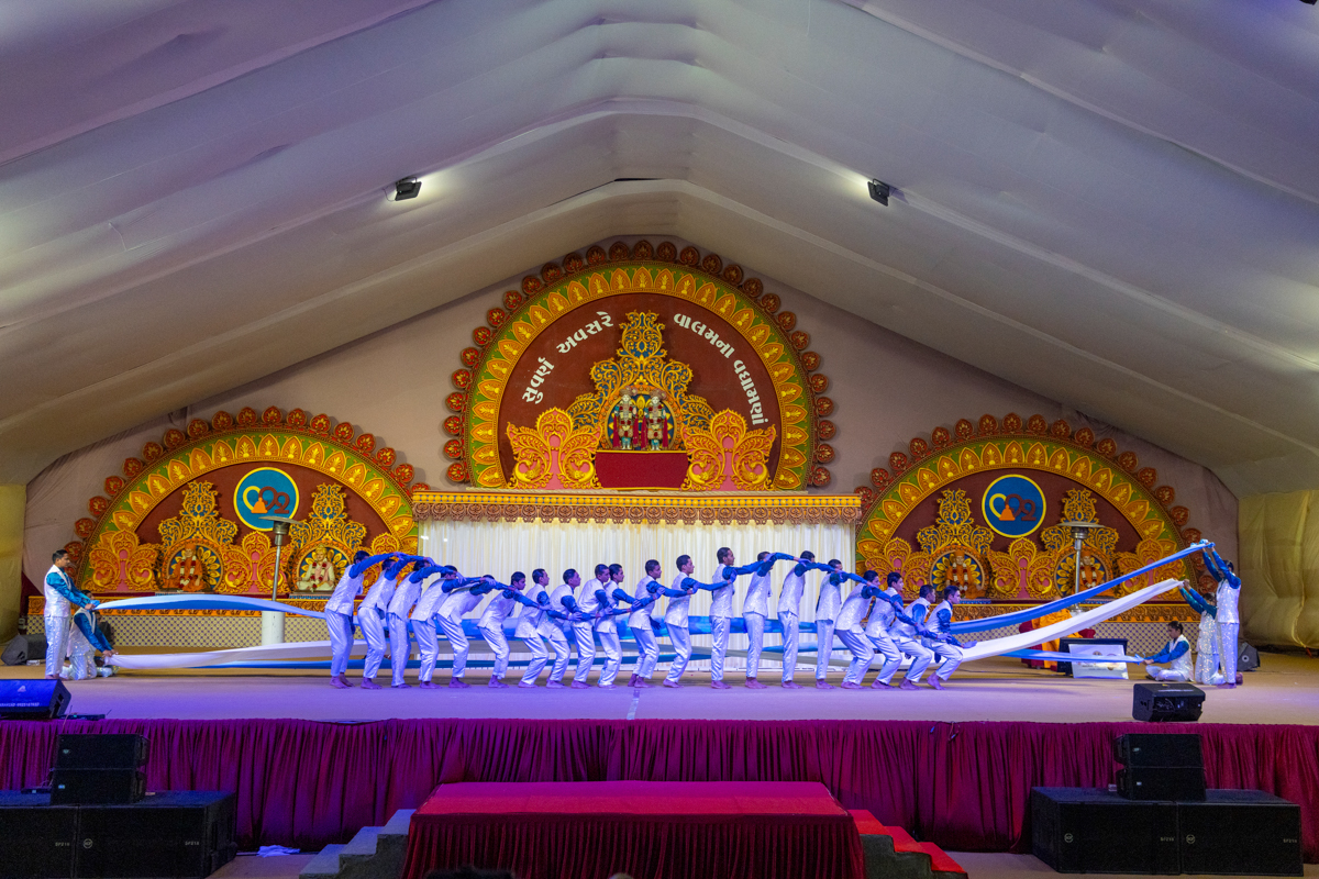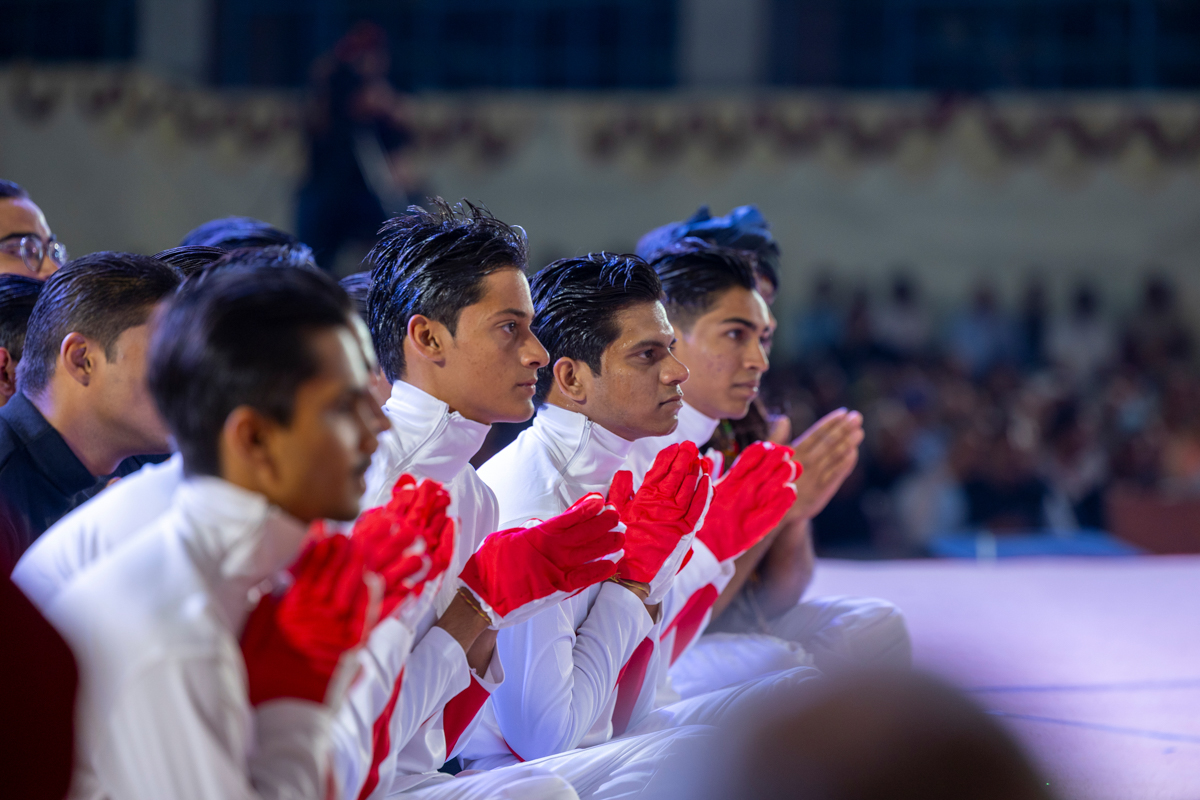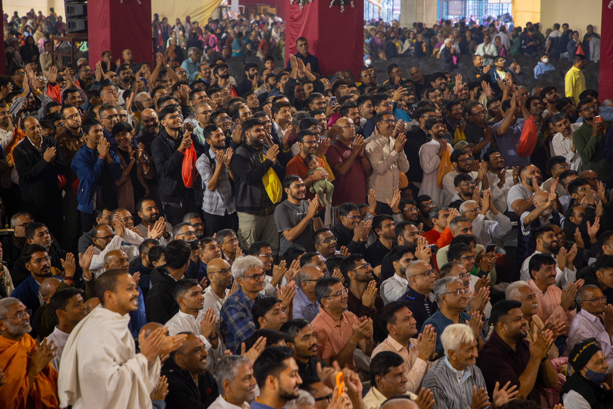 Yuvaks sing kirtans in the assembly