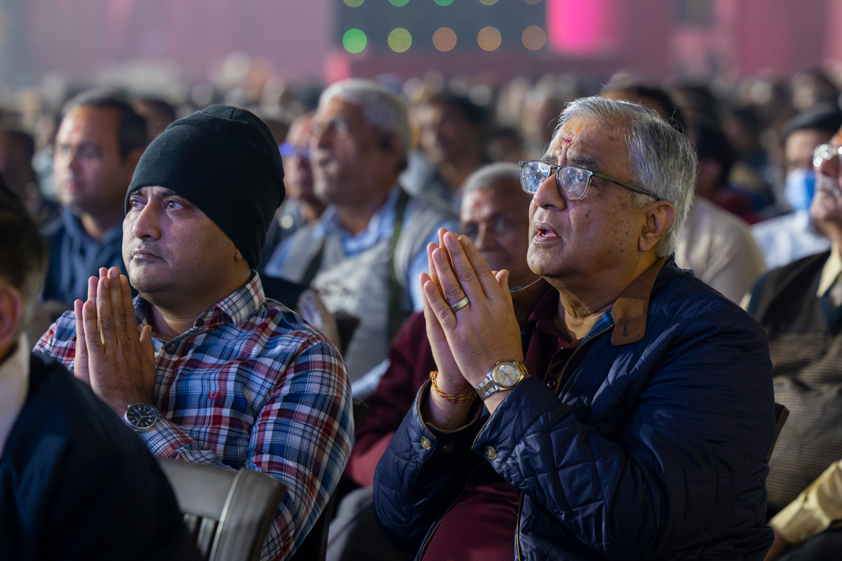 Swamishri greets all with folded hands