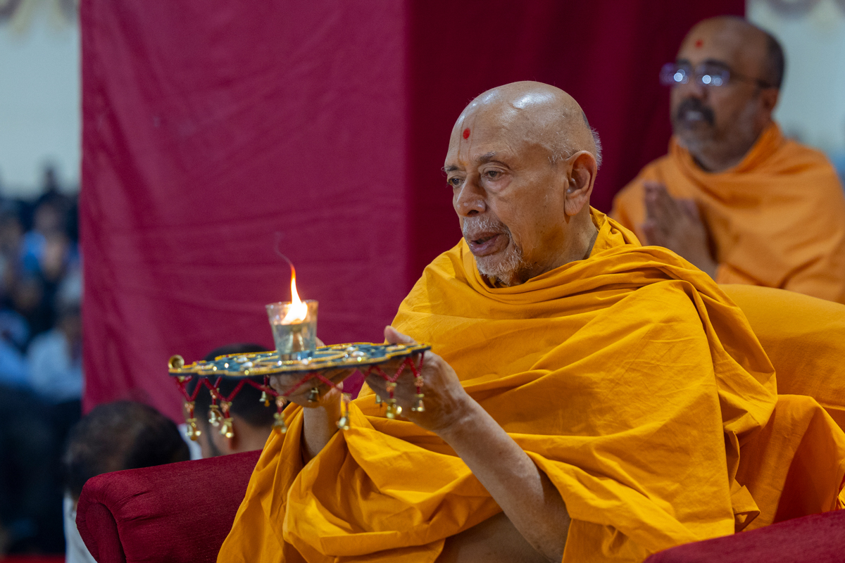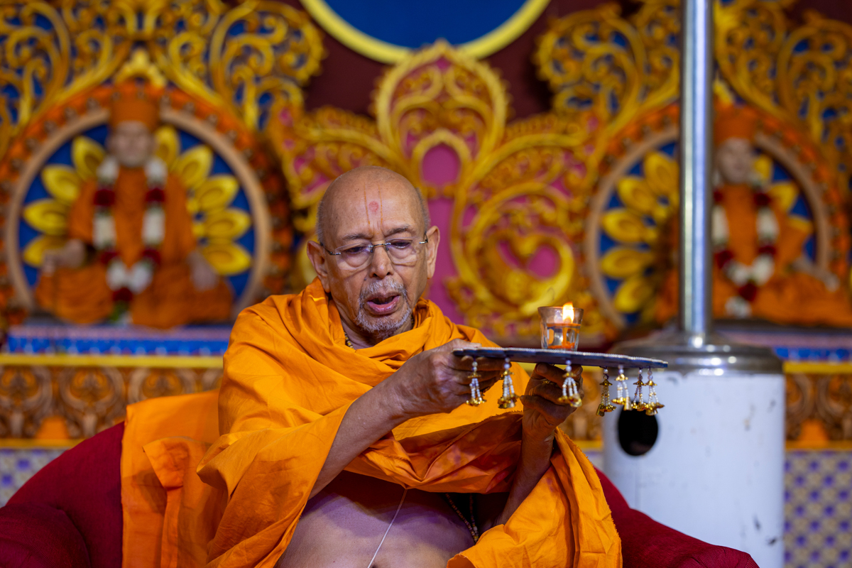 Swamishri performs the morning arti