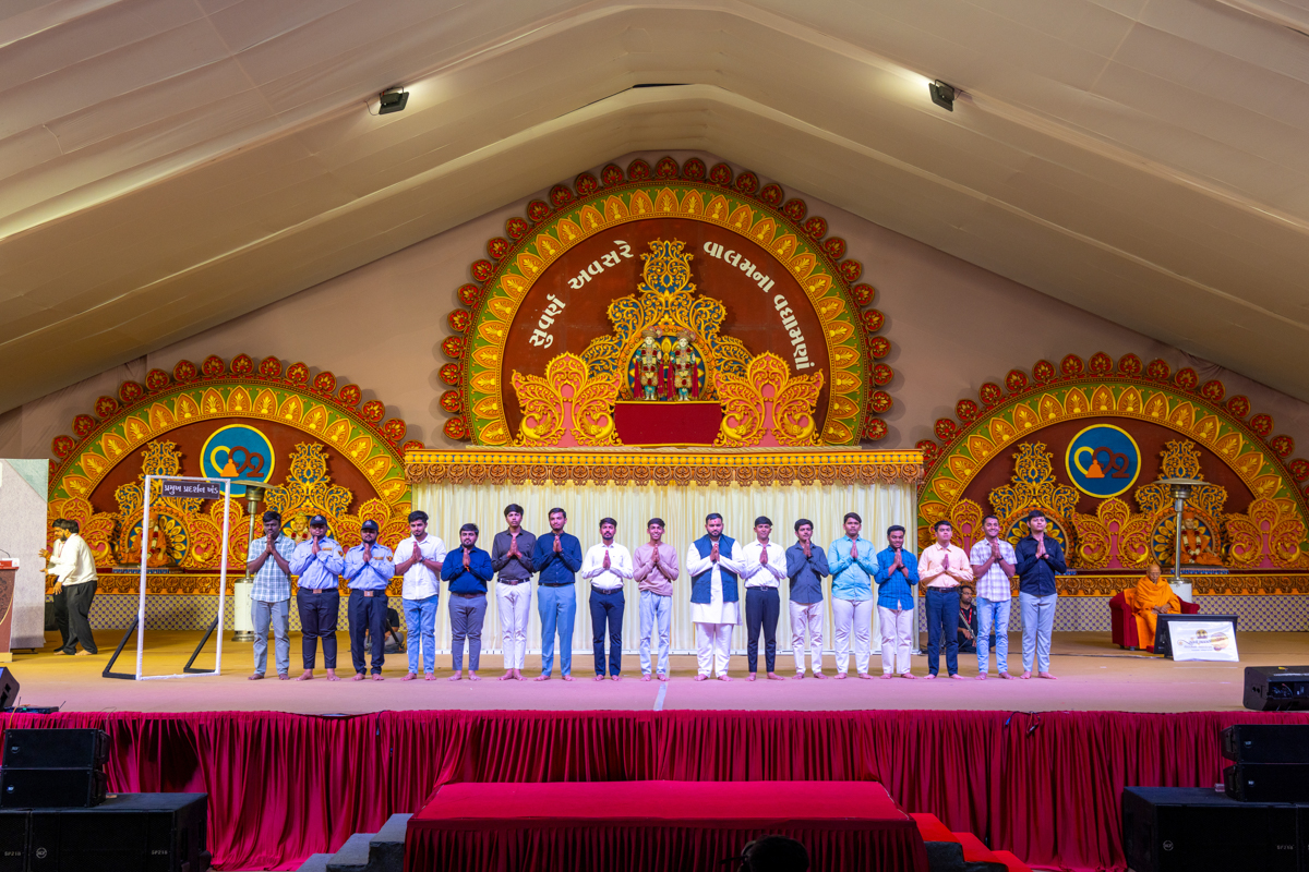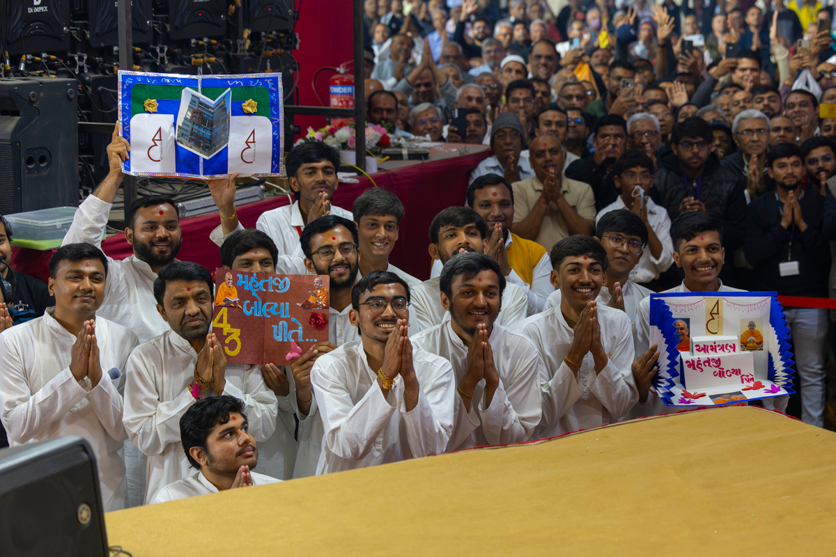Yuvaks display their cards to Swamishri
