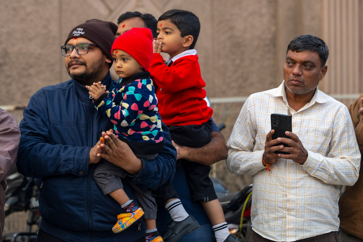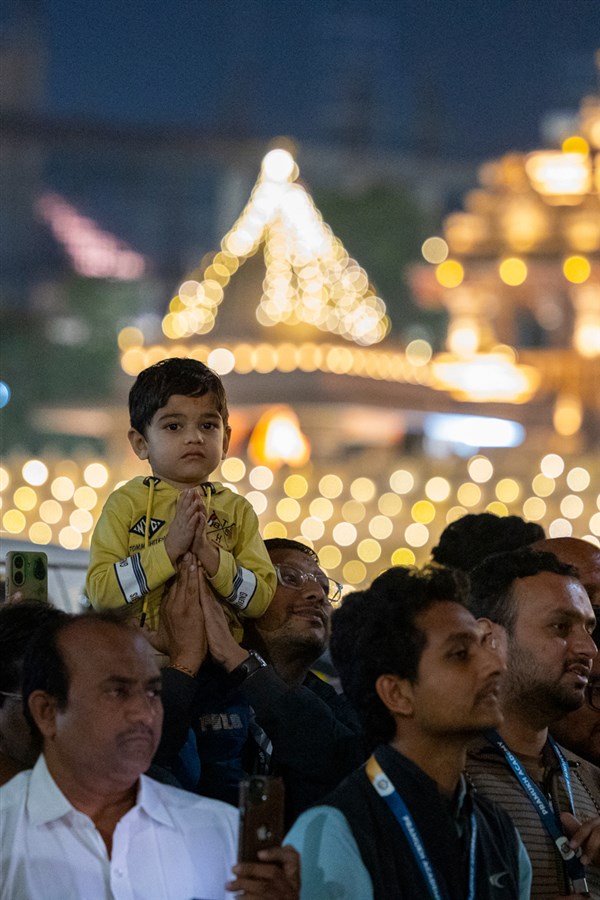 Yuvaks and devotees doing darshan of Swamishri