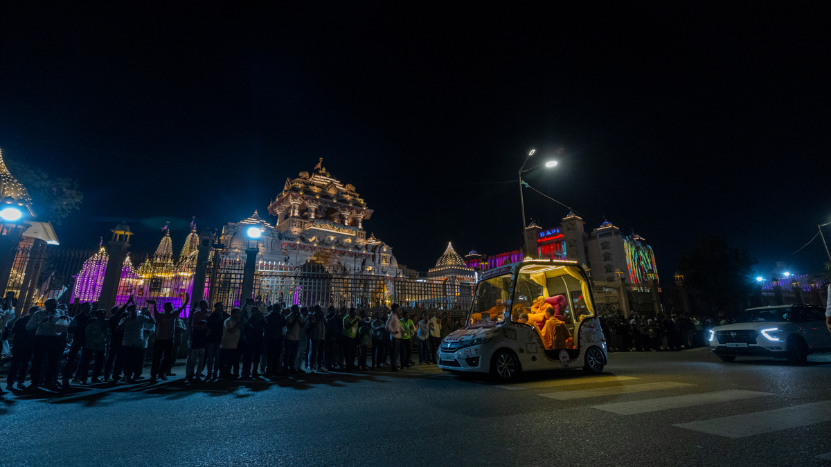 Swamishri on his way to the evening assembly