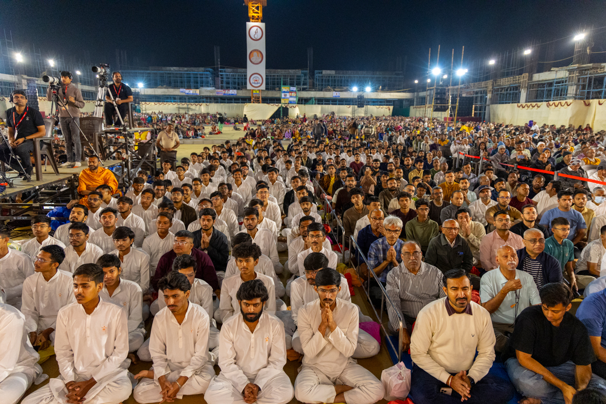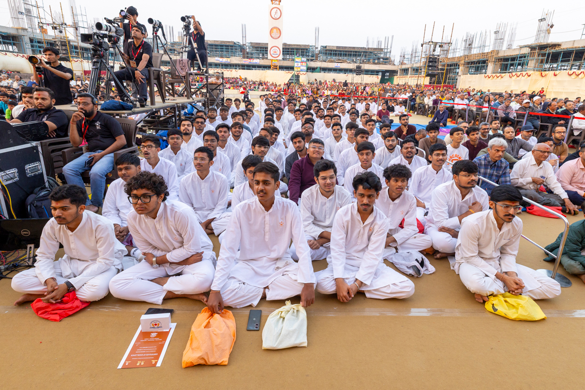 Yuvaks and devotees during the assembly