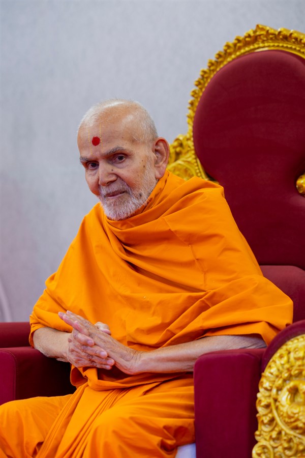 Swamishri blesses the morning assembly