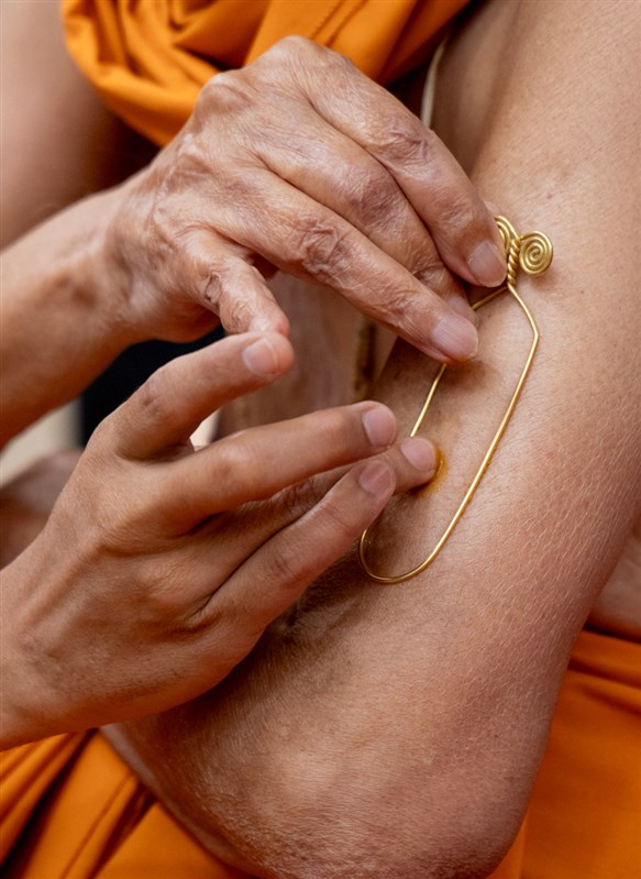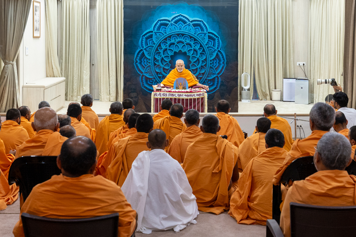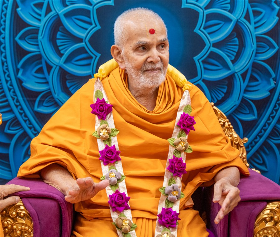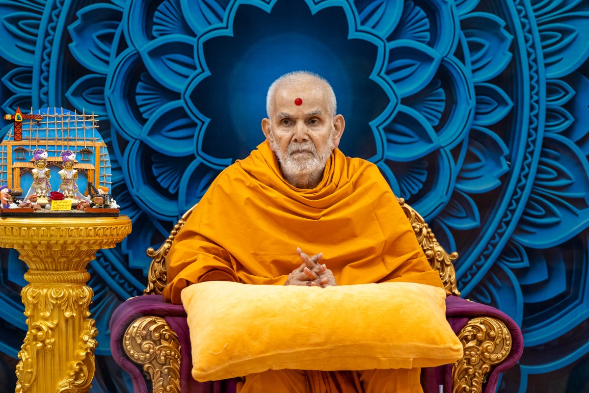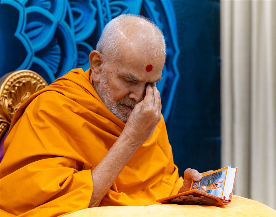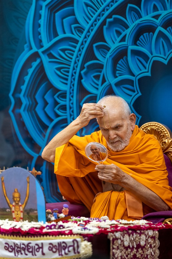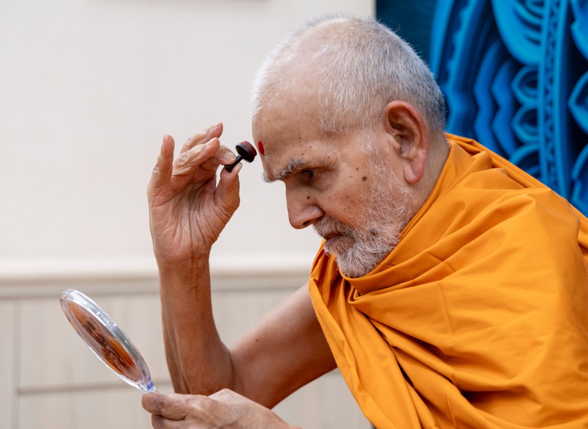 Param Pujya Mahant Swami Maharaj applies a tilak on his forehead