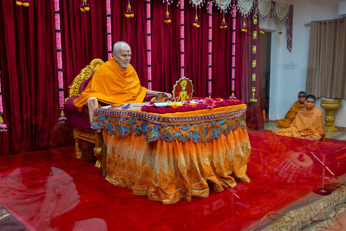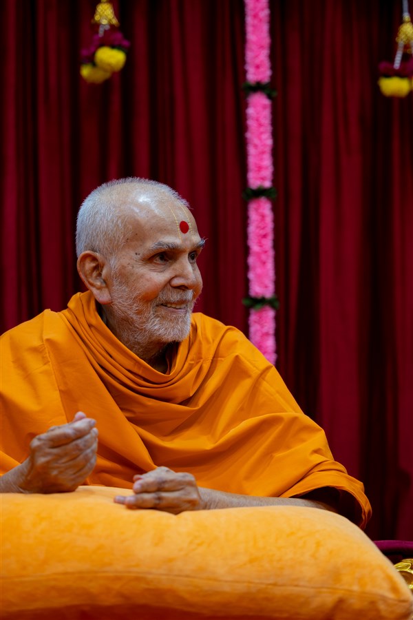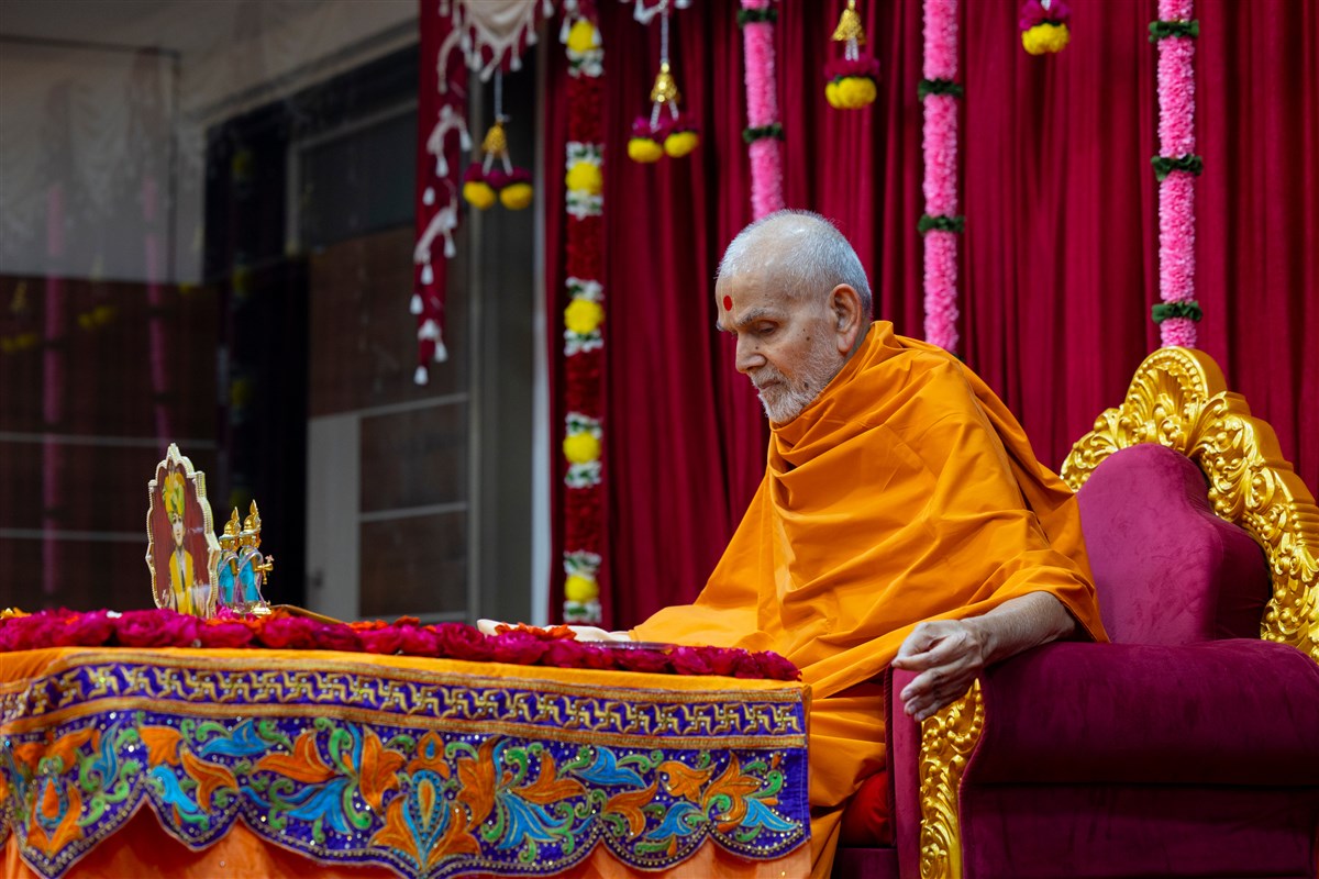 Swamishri engrossed in darshan of Shri Ghanshyam Maharaj