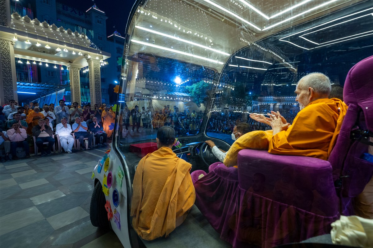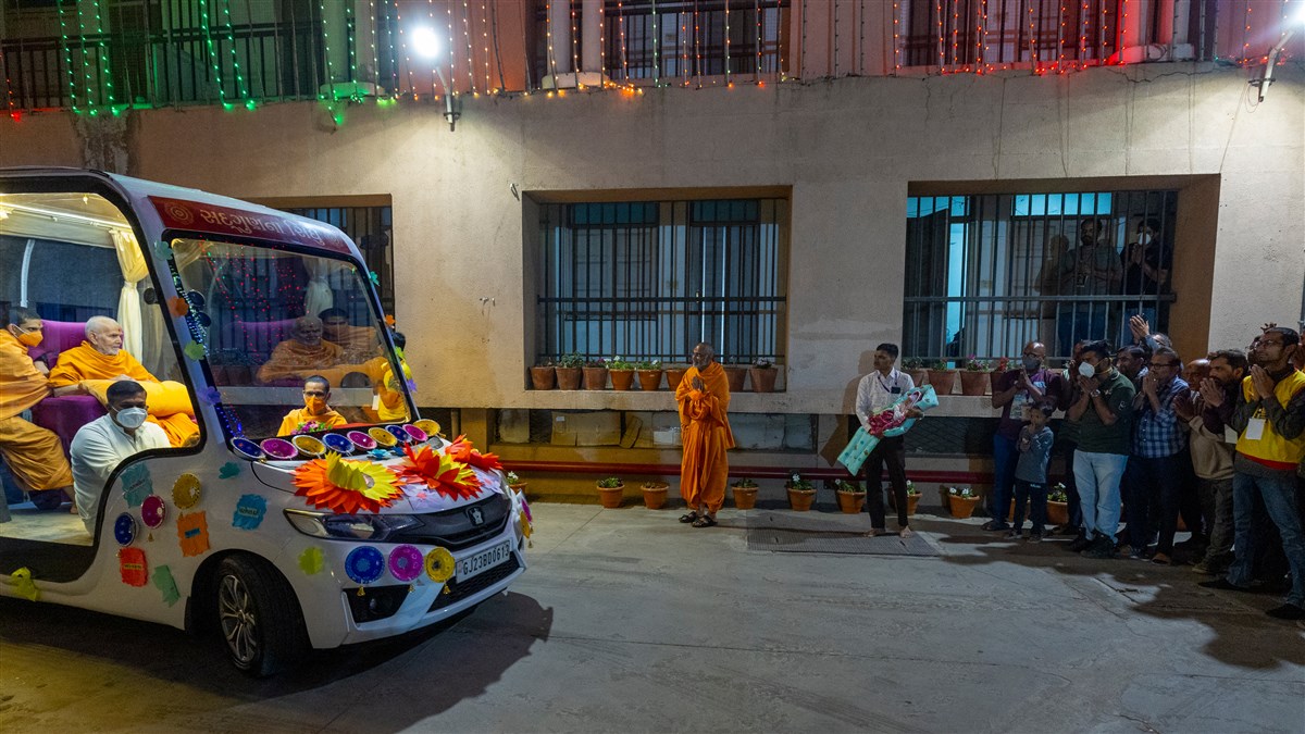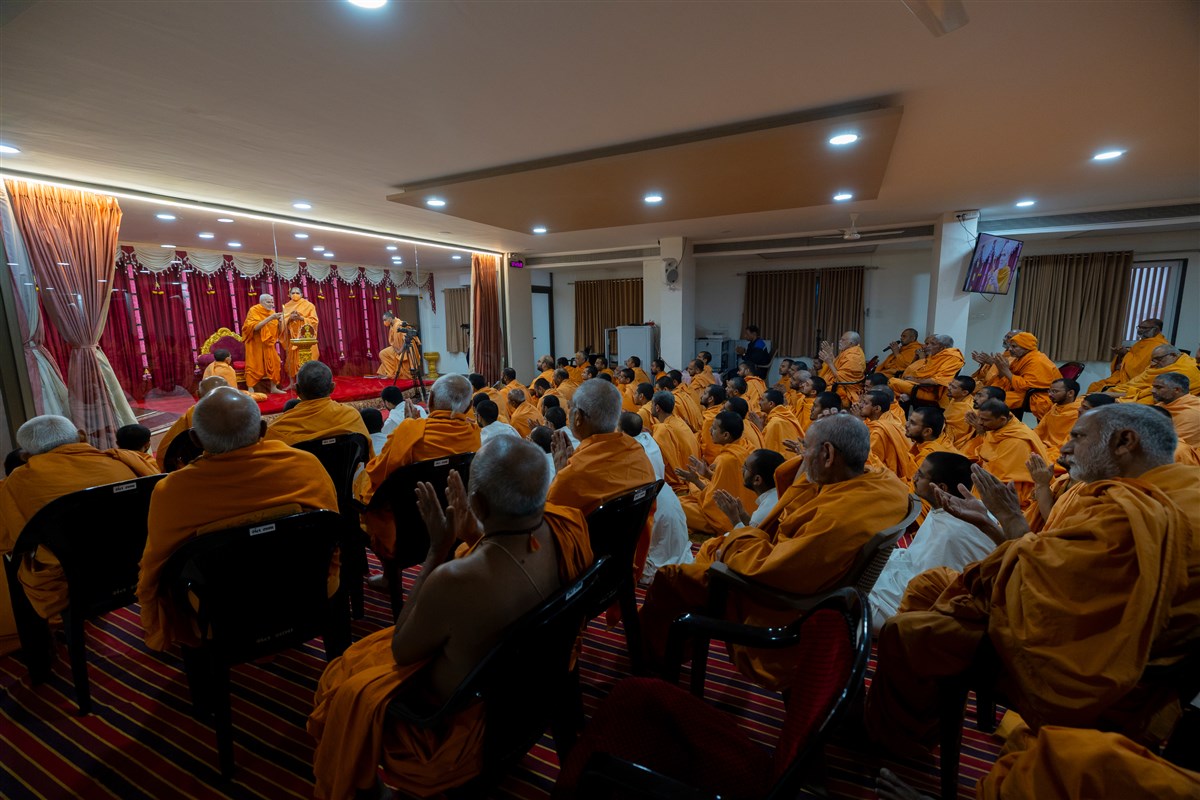 Pujya Ghanshyamcharan Swami greets Swamishri