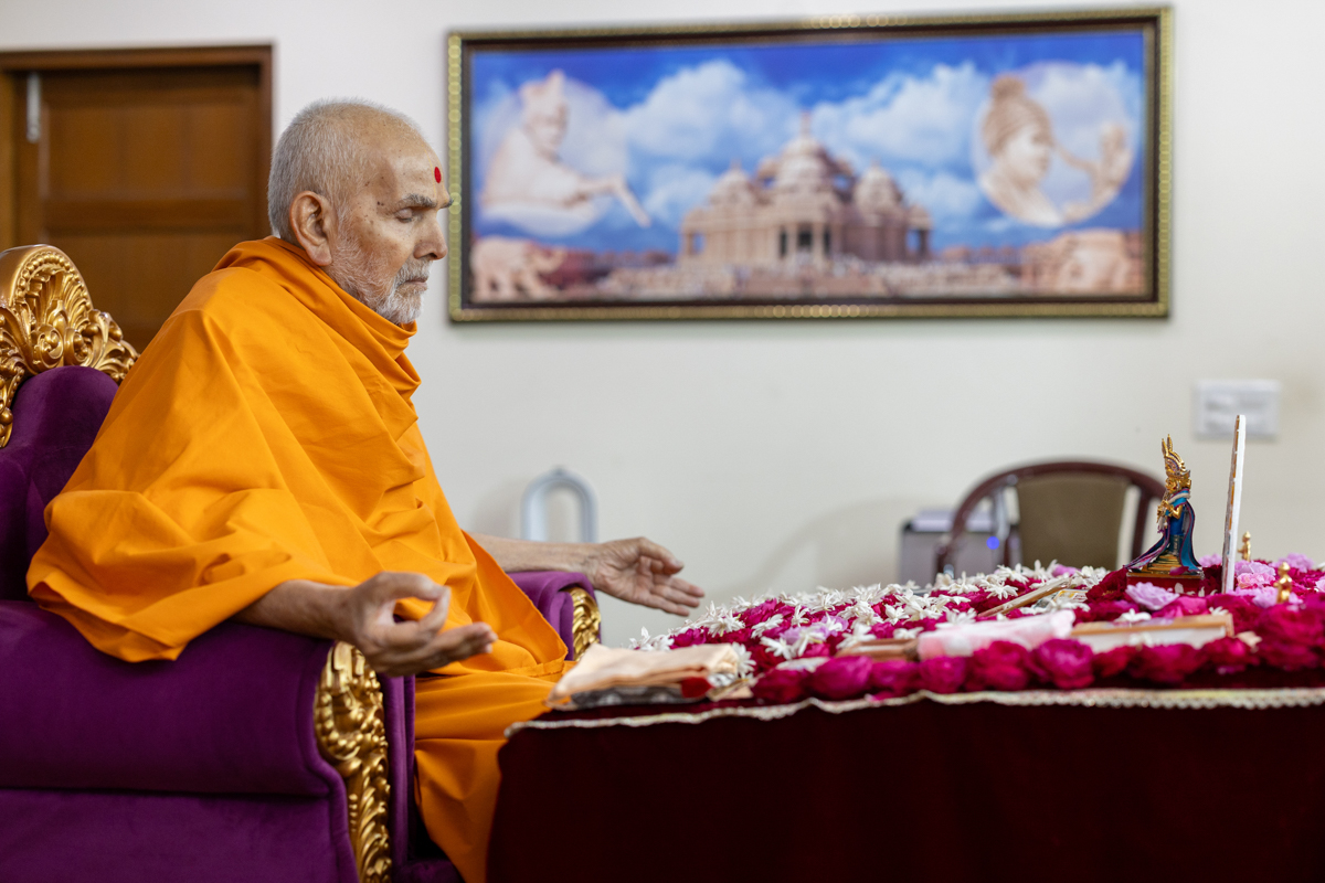 Swamishri meditates in his daily puja