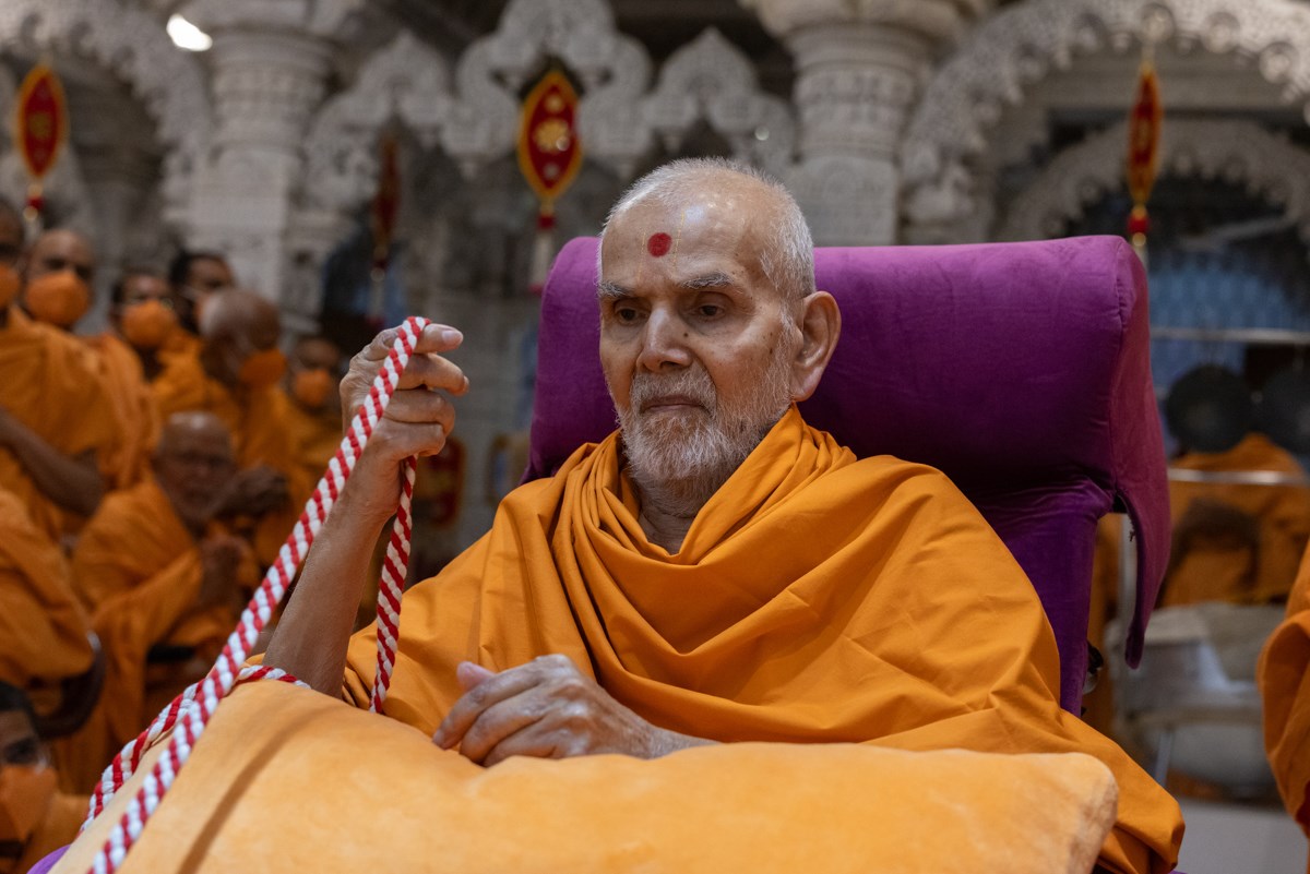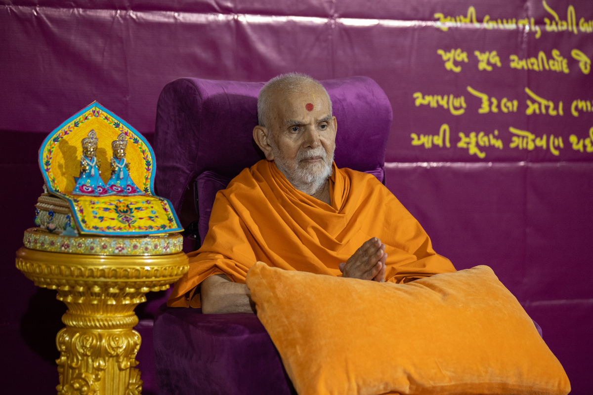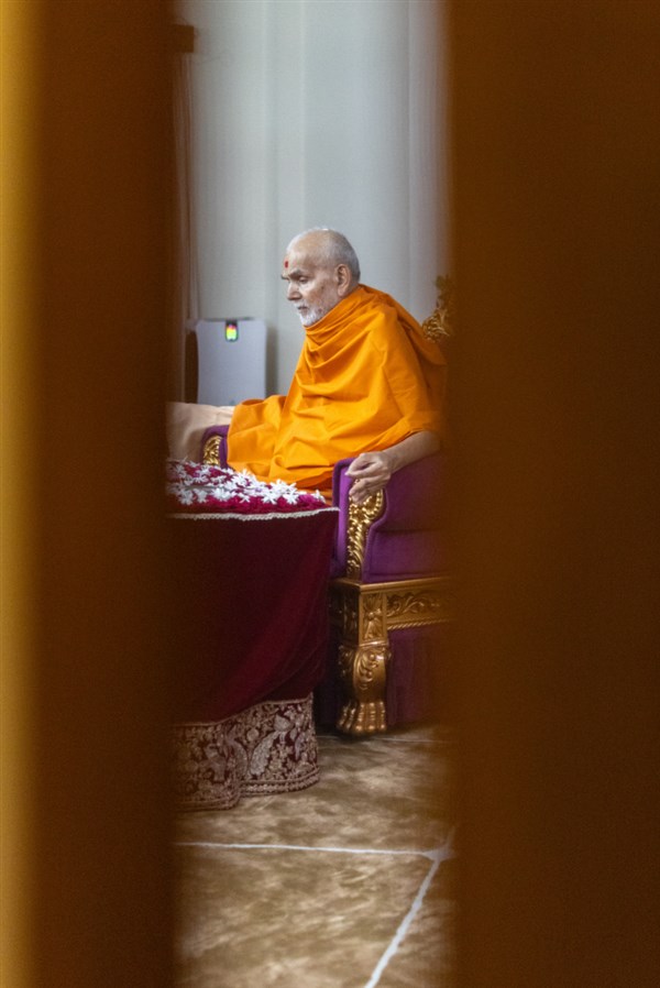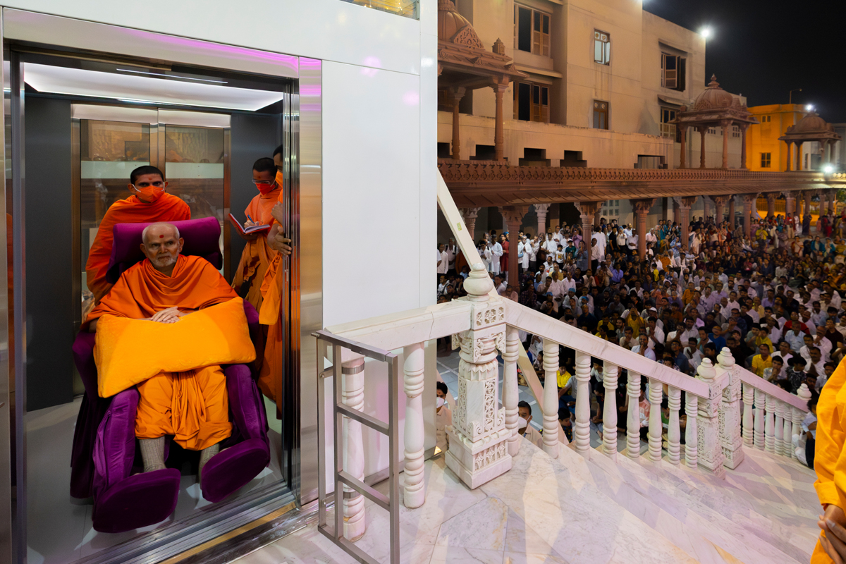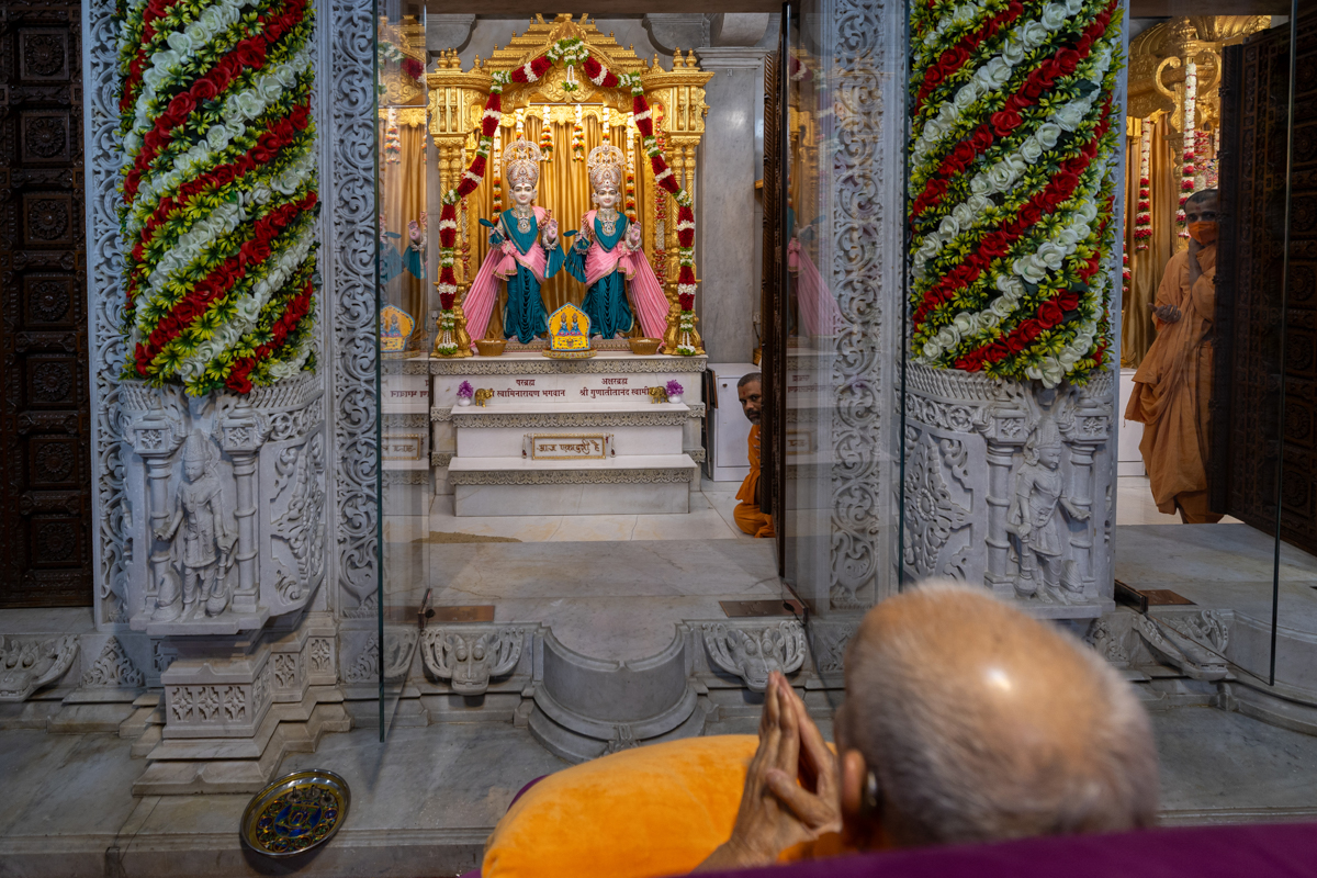Swamishri arrives for Thakorji's darshan