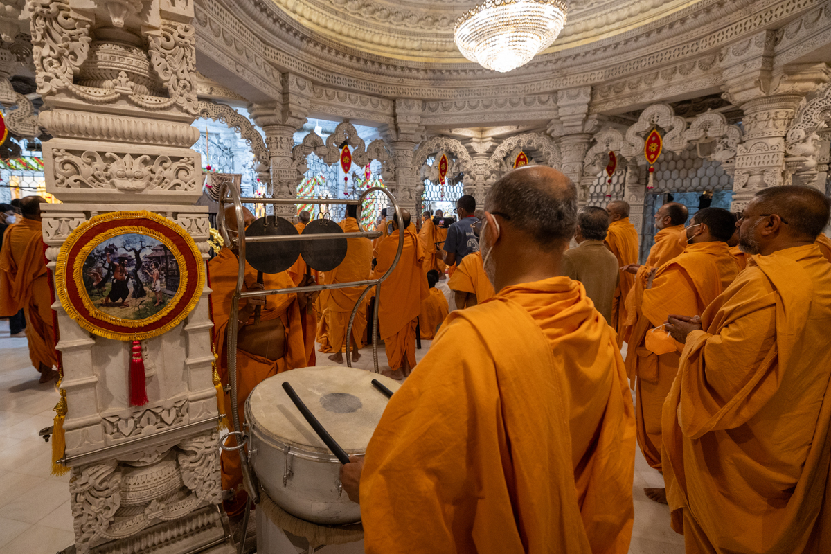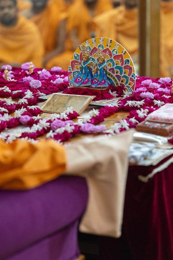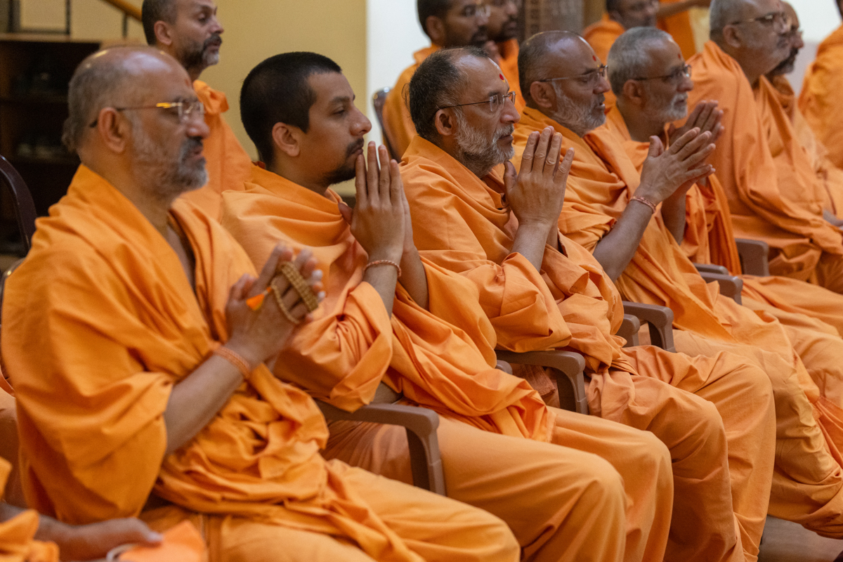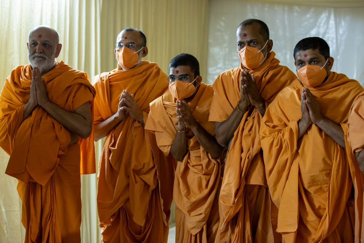 Swamis doing Swamishri's puja darshan
