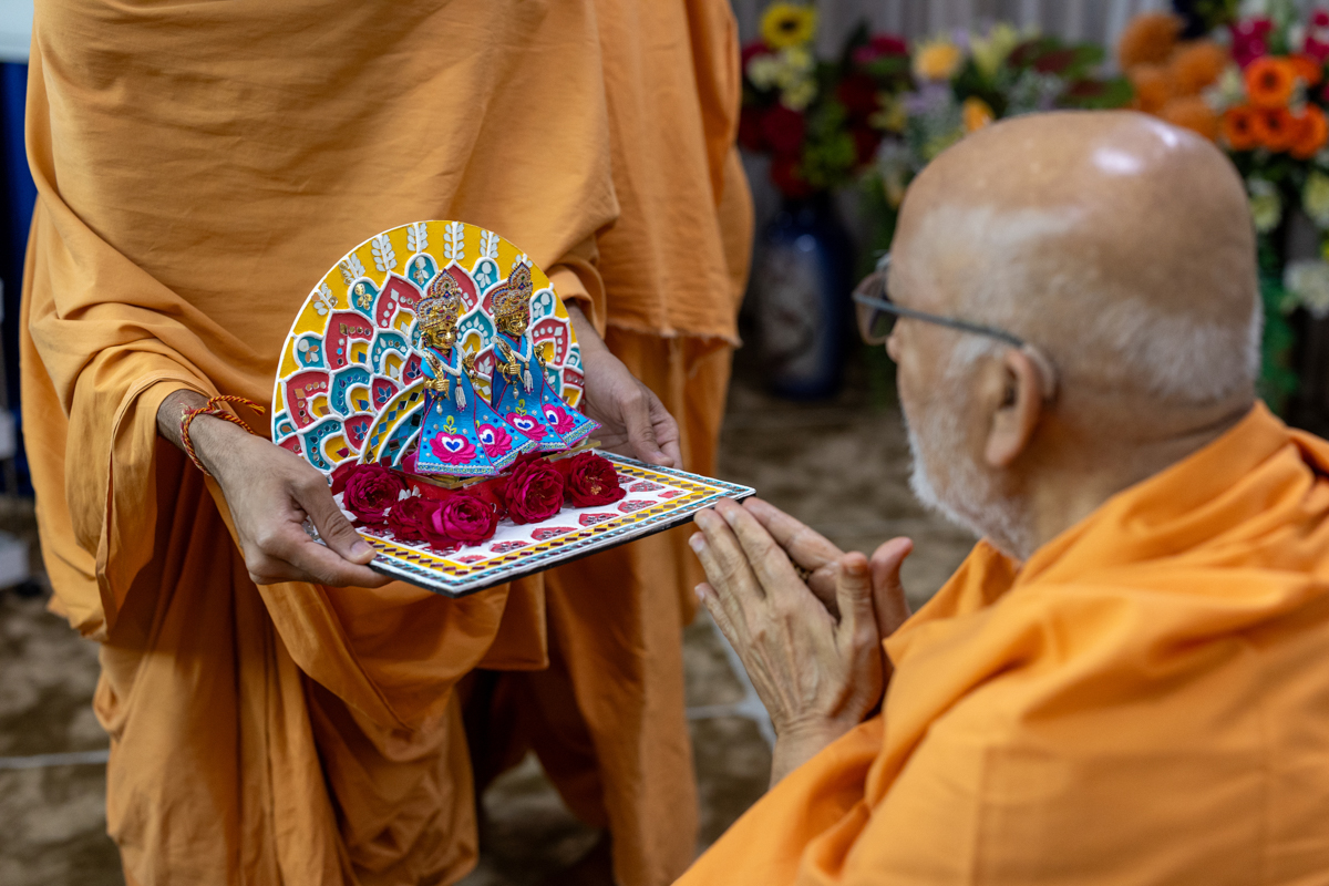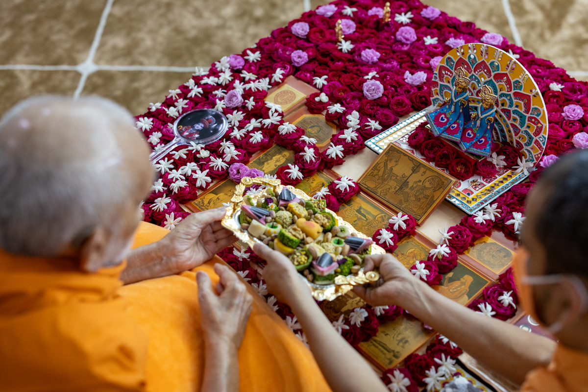 Swamishri offers thal to Thakorji