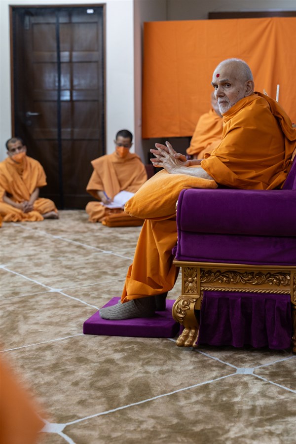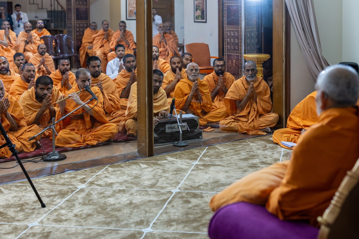 Swamishri interacts with swamis