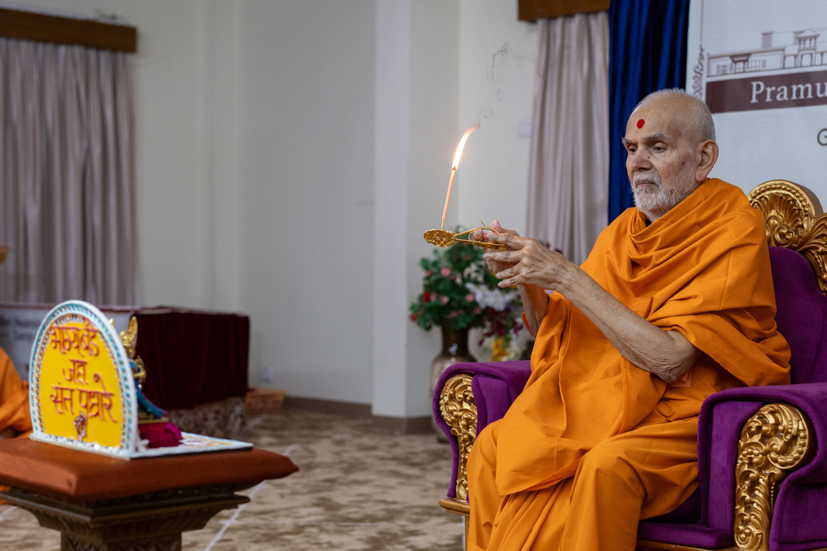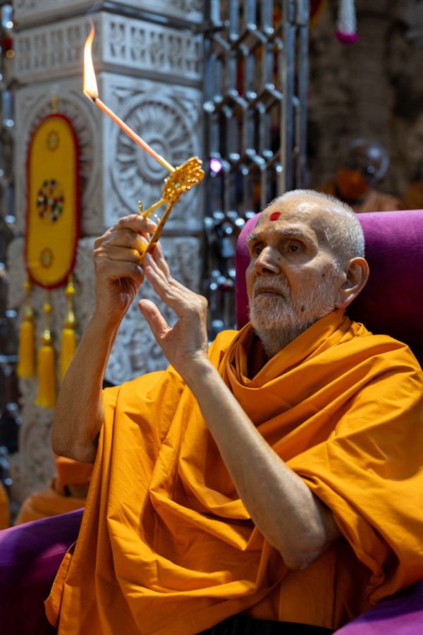 Swamishri performs the morning arti