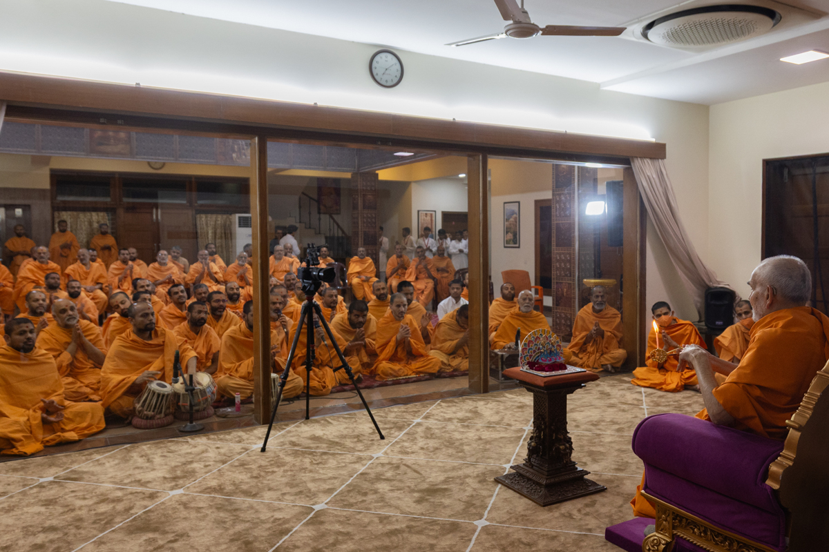 Swamishri performs the evening arti