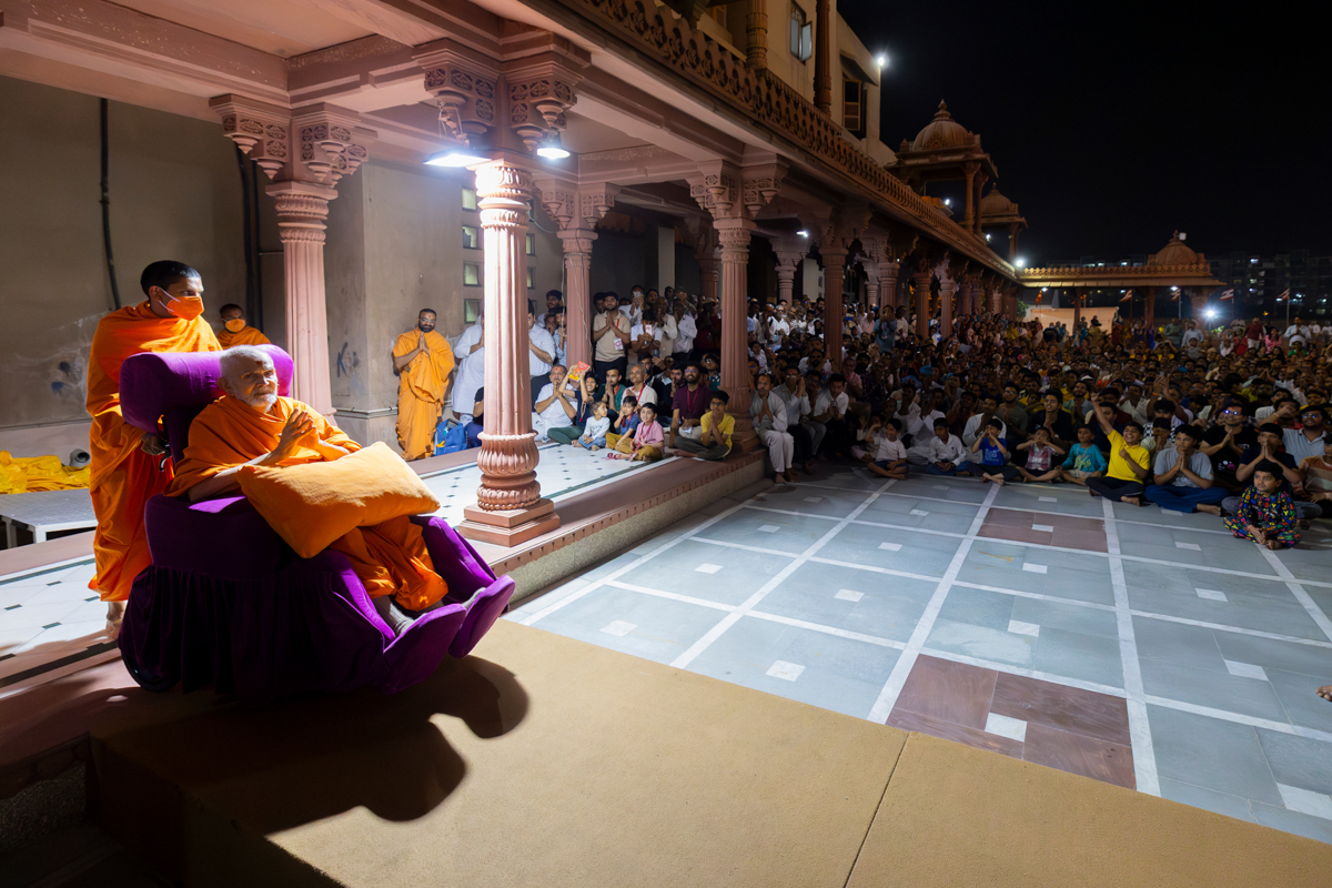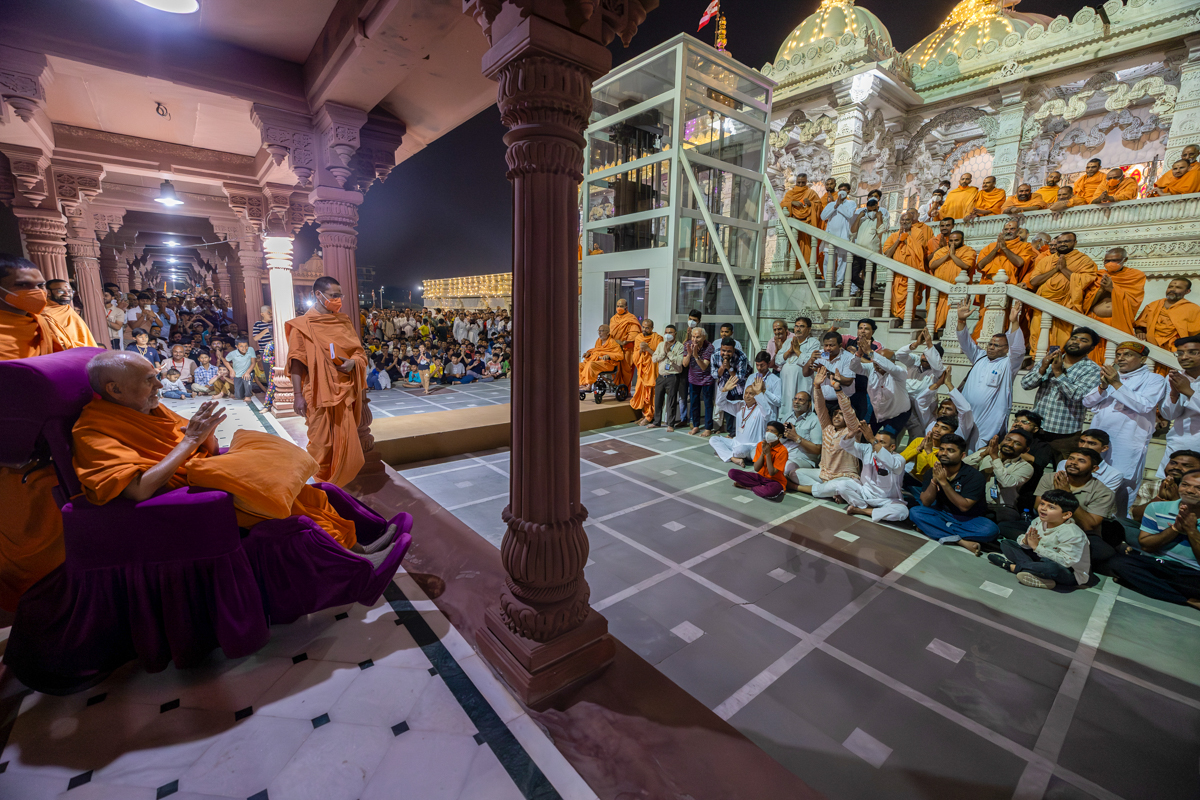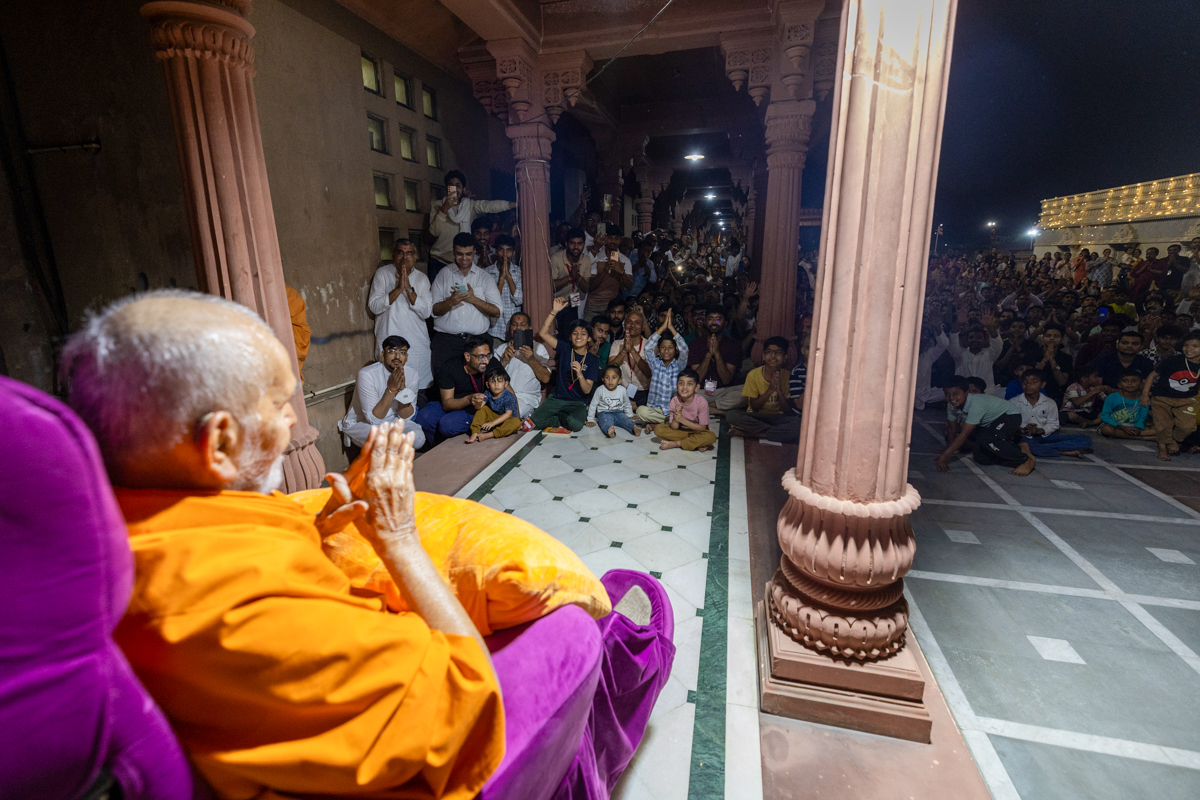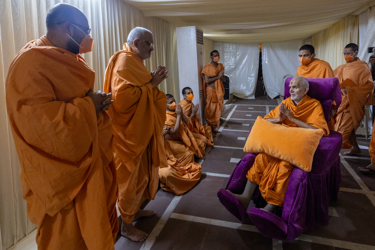 Swamishri greets all with folded hands