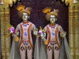 The adornment of the murti of Bhagwan Swaminarayan / Shri Harikrishna Maharaj with sandalwood paste ("chandan na wagha") is an annual feature in Swaminarayan mandirs, during the month of Vaishakh.