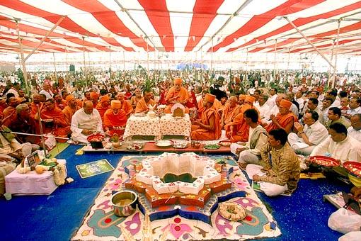 A sight for the gods: Arti being performed by nearly 175,000 devotees during the celebration assembly