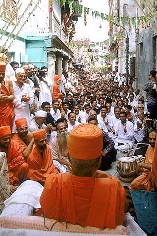 Swamishri recalls the times when Shastriji Maharaj, Yogiji Maharaj, Nirgundas Swami, himself and other sadhus had stayed at Ambli Vali Pol. While pointing out the homes Swamishri easily recollects the names and virtues of devotees who lived there 50 years