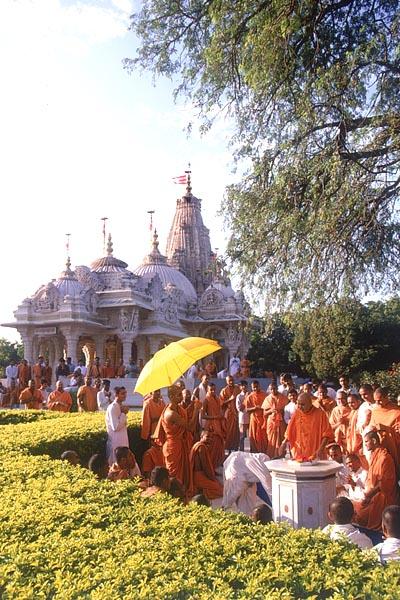 Performing pradakshina of shrine where the palanquin, with Shastriji Maharaj's body, was placed before cremation
