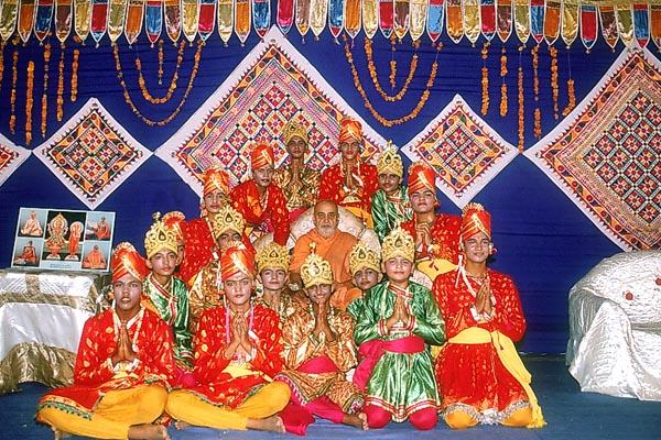 Swamishri at the Sandipani Vidyapith (of Shri Rameshbhai Oza) with Brahmin students