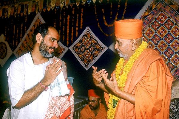 Shri Dhirubhai Nanji Mehta (left) with Swamishri