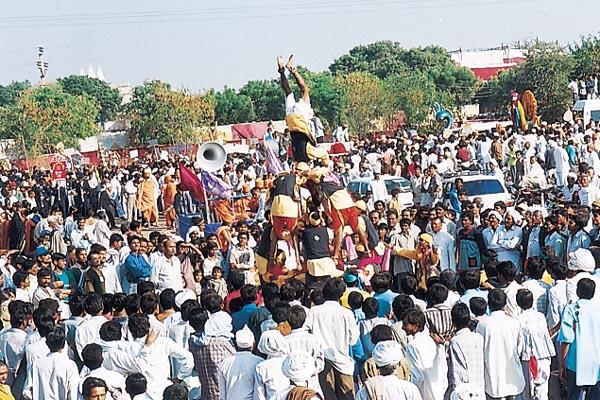 The crowd enjoy the darshan of the procession as it passes by the main festival gate