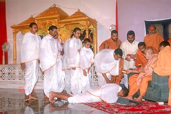 Swamishri engaged in Thakorji's darshan