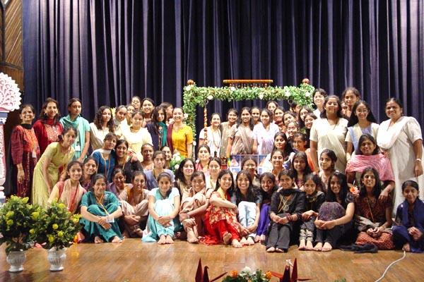 Kishores and kishoris seated in the auditorium
