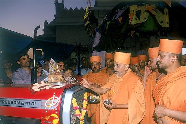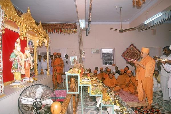 Swamishri concludes the ritual by performing arti of God residing in the hearts of devotees
