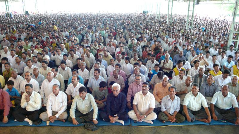 Sadhus and devotees during satsang assembly of Raksha Bandhan day