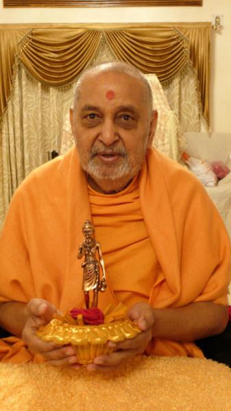 Shri Harikrishna Maharaj in Swamishri's morning puja