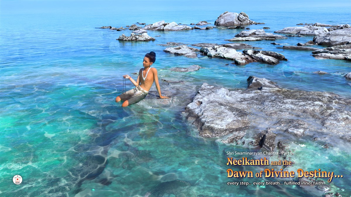 Thereafter, he proceeds to Trimbakeshwar in Maharashtra and to Dharampur, Surat, and Bharuch in Gujarat. Then, in Vadodara, Neelkanth accepts the devotion of Amichand Sheth and his wife. After passing through Vadtal, in Bochasan, he blesses Kashidas and his family with a divine promise. Then, in Khambhat, Budhej, Vagad, Lakadiya, Gopnath, Gupta Prayag, and other places, he graciously accepts the devotion of many devotees.